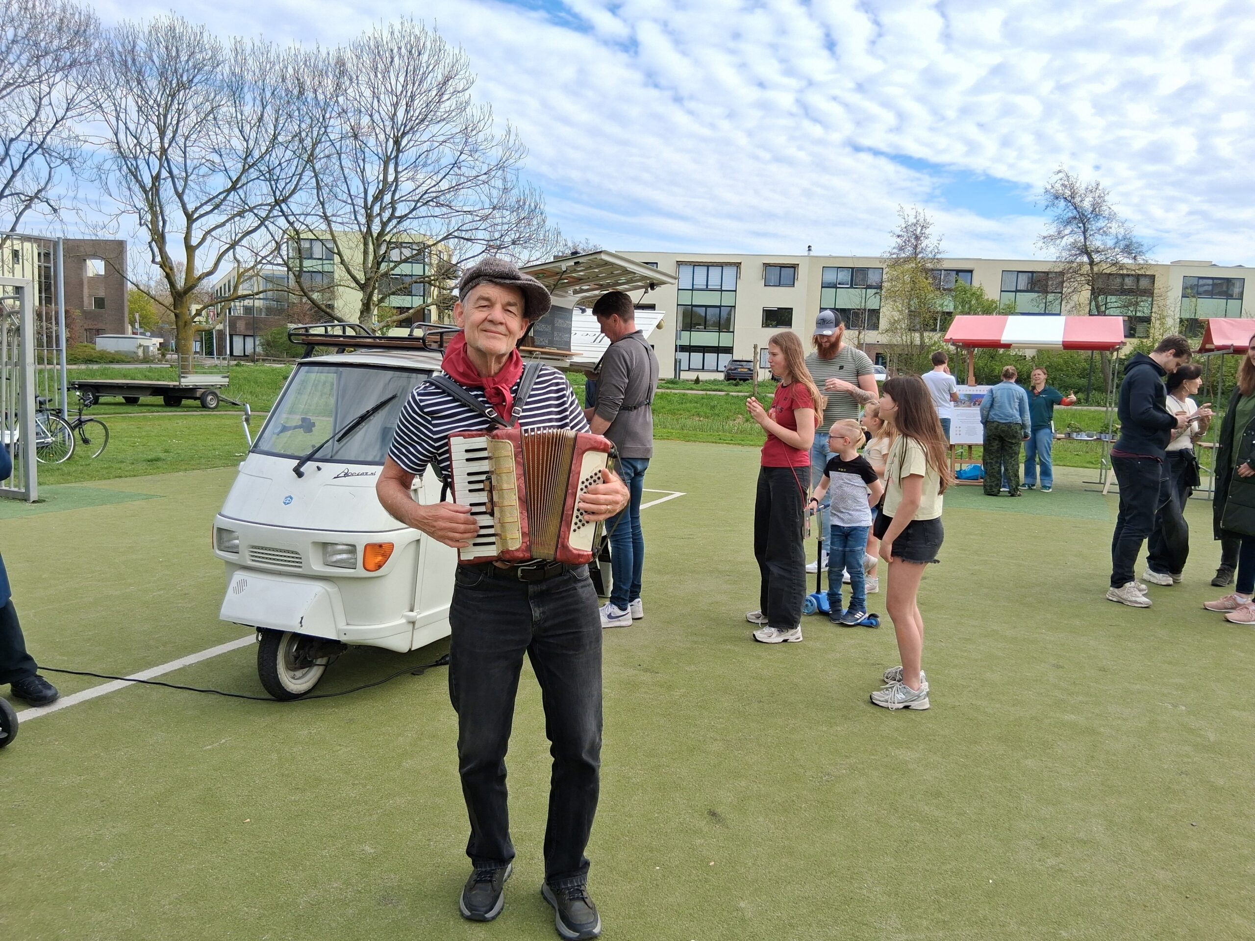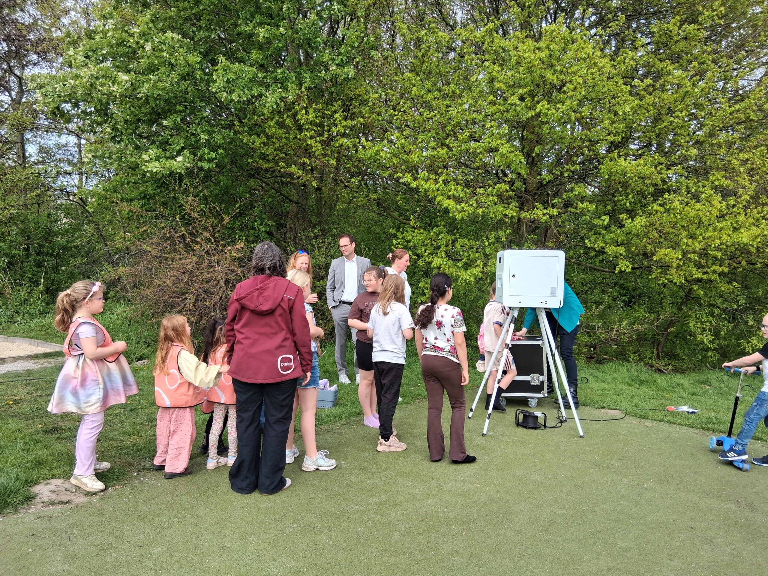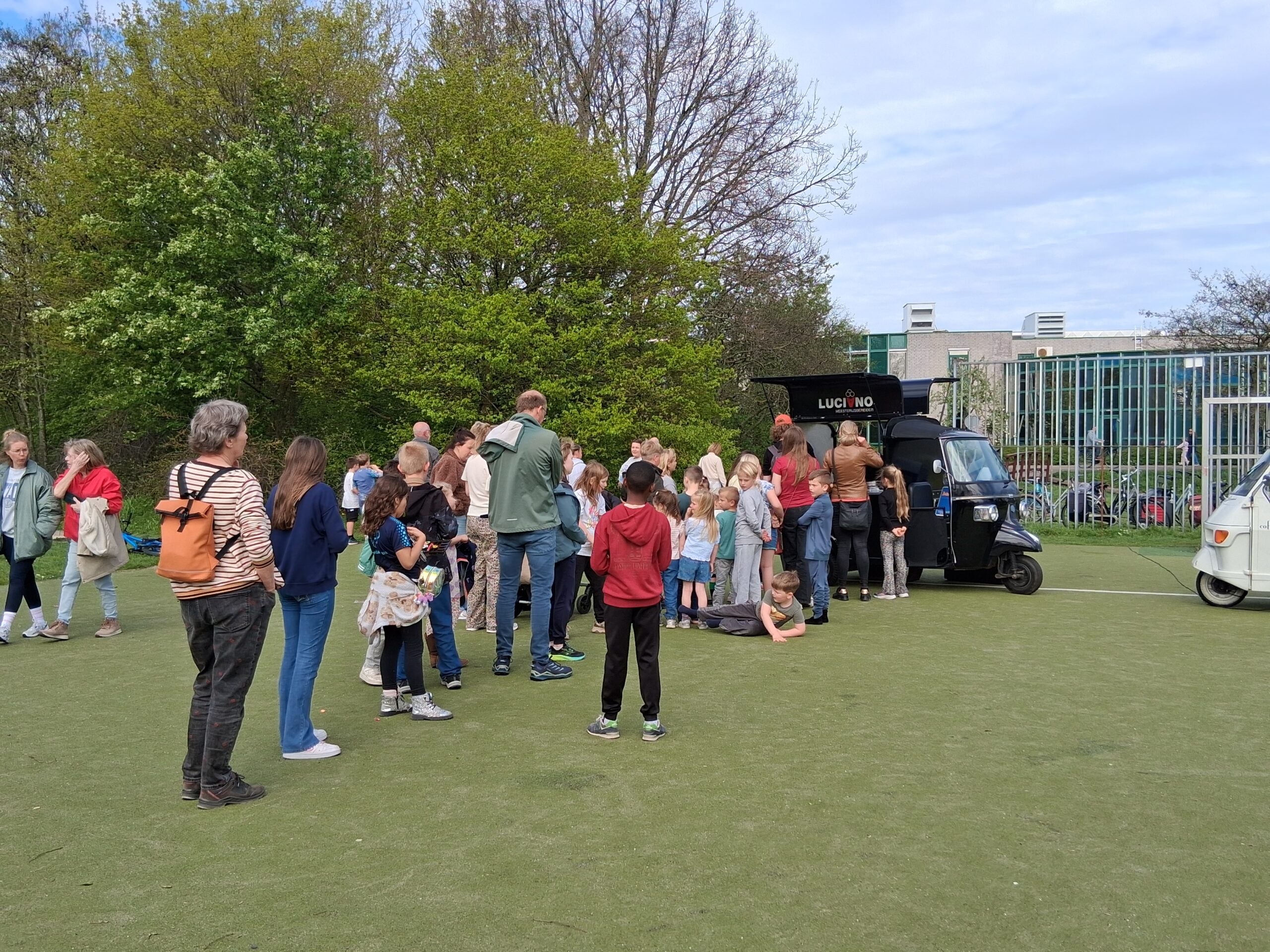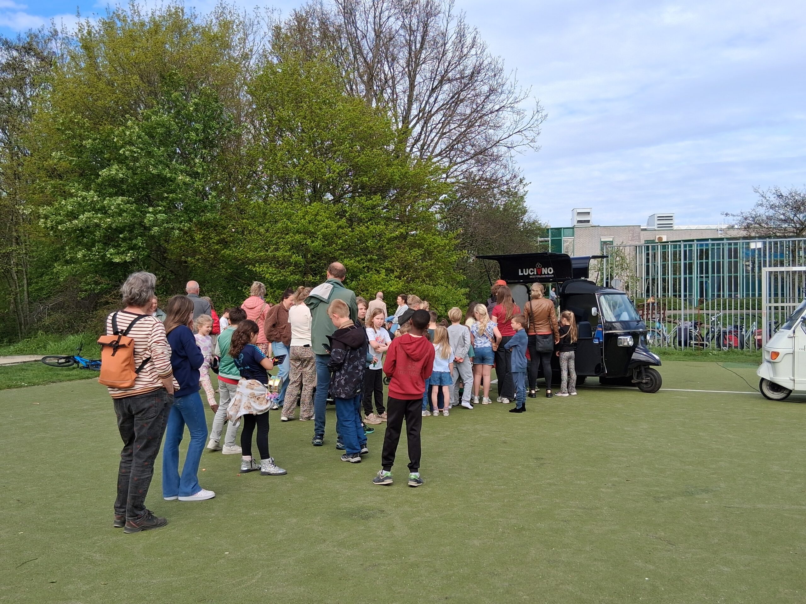 Die vond woensdagmiddag plaats in het Stevenspark. Een zonnige maar winderige dag zorgde voor een gezellige sfeer, én wegwaaiende informatieborden. Voor kinderen was er gratis ijs en een springkussen, voor anderen gratis koffie.