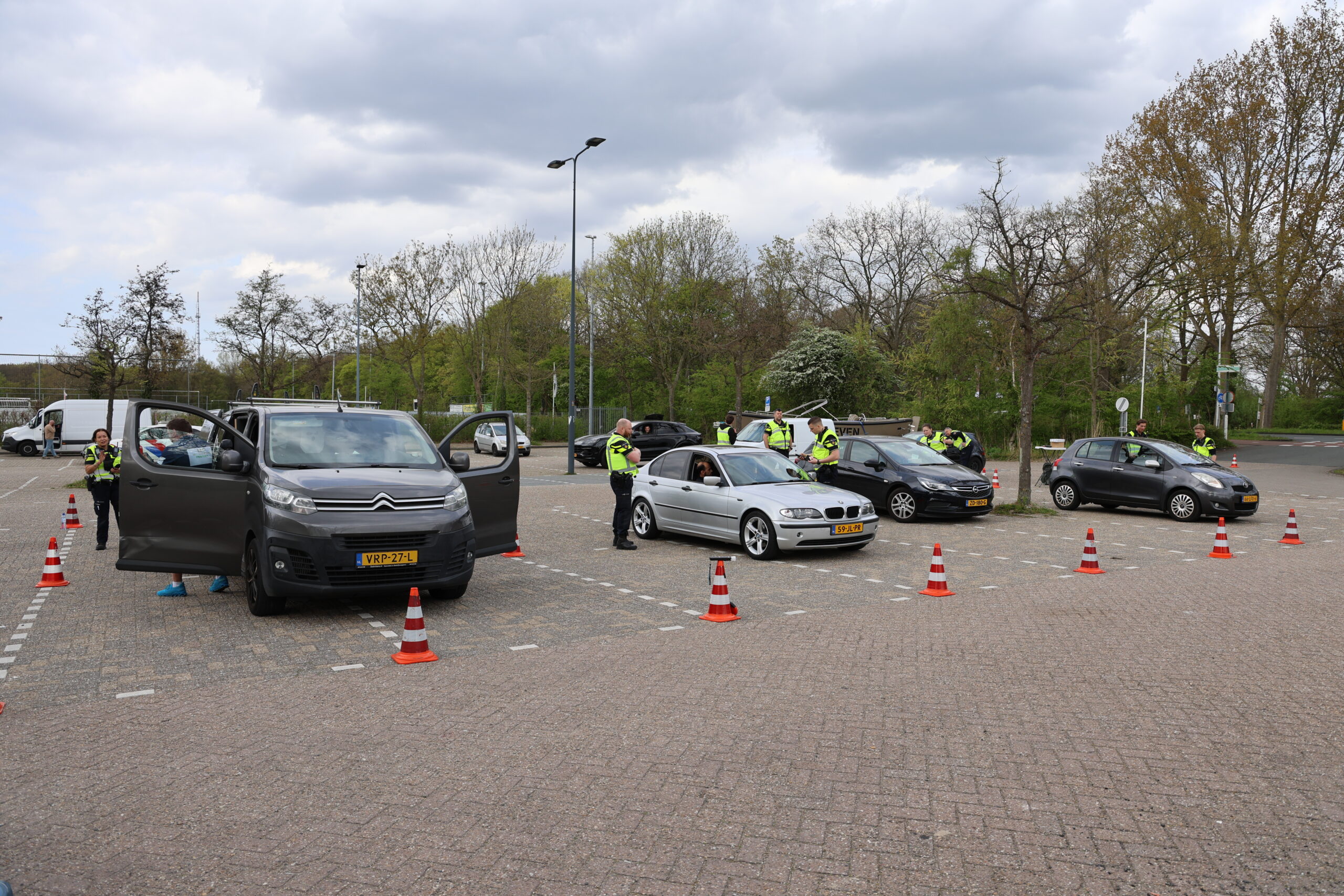 Automobilisten werden door motoragenten bij de Oegstgeesterweg en de Willem de Zwijgerlaan in Leiden van de weg gehaald en naar de controlepost geleid. Daar werden de voertuigen aan een nadere inspectie onderworpen.