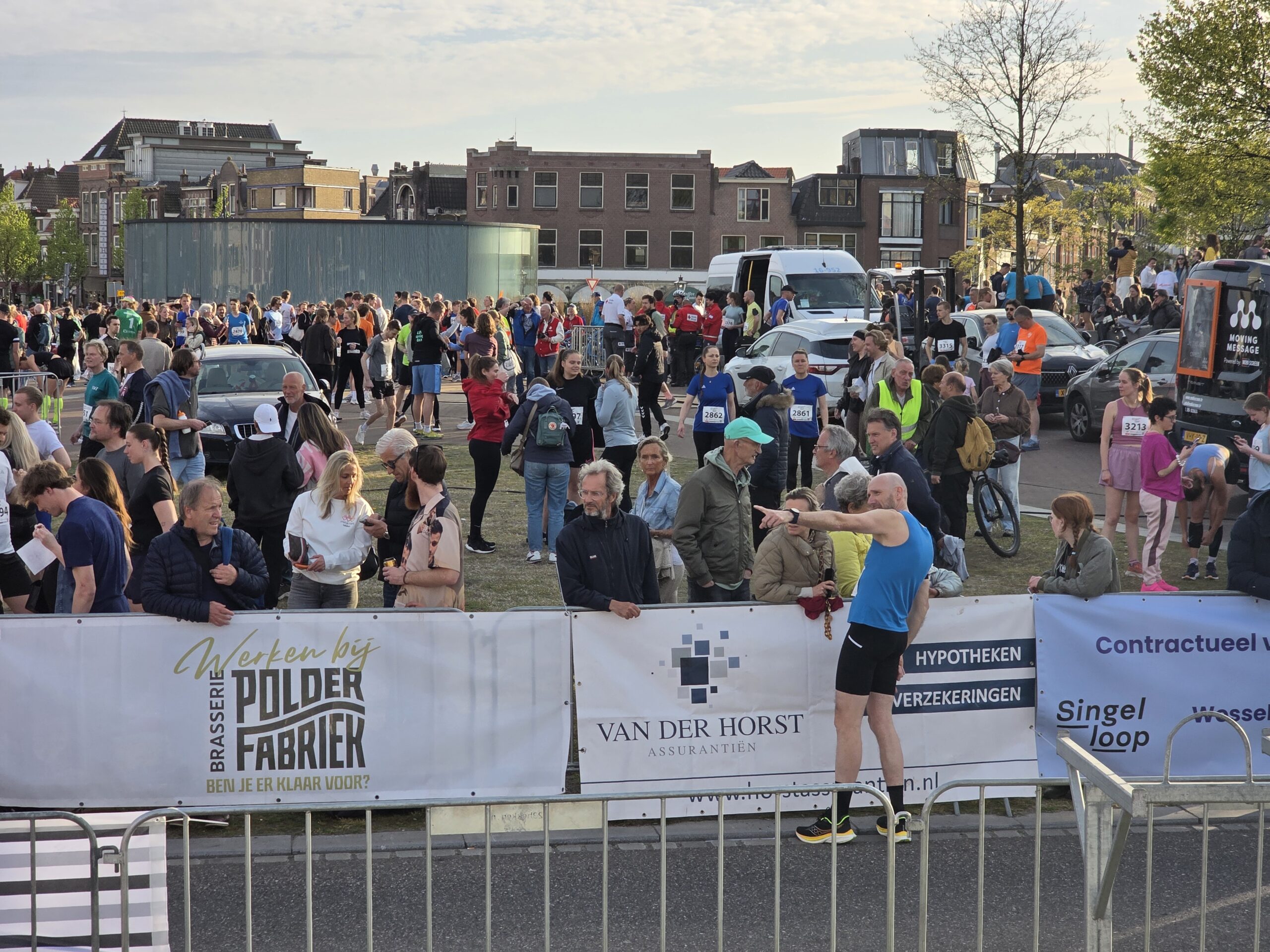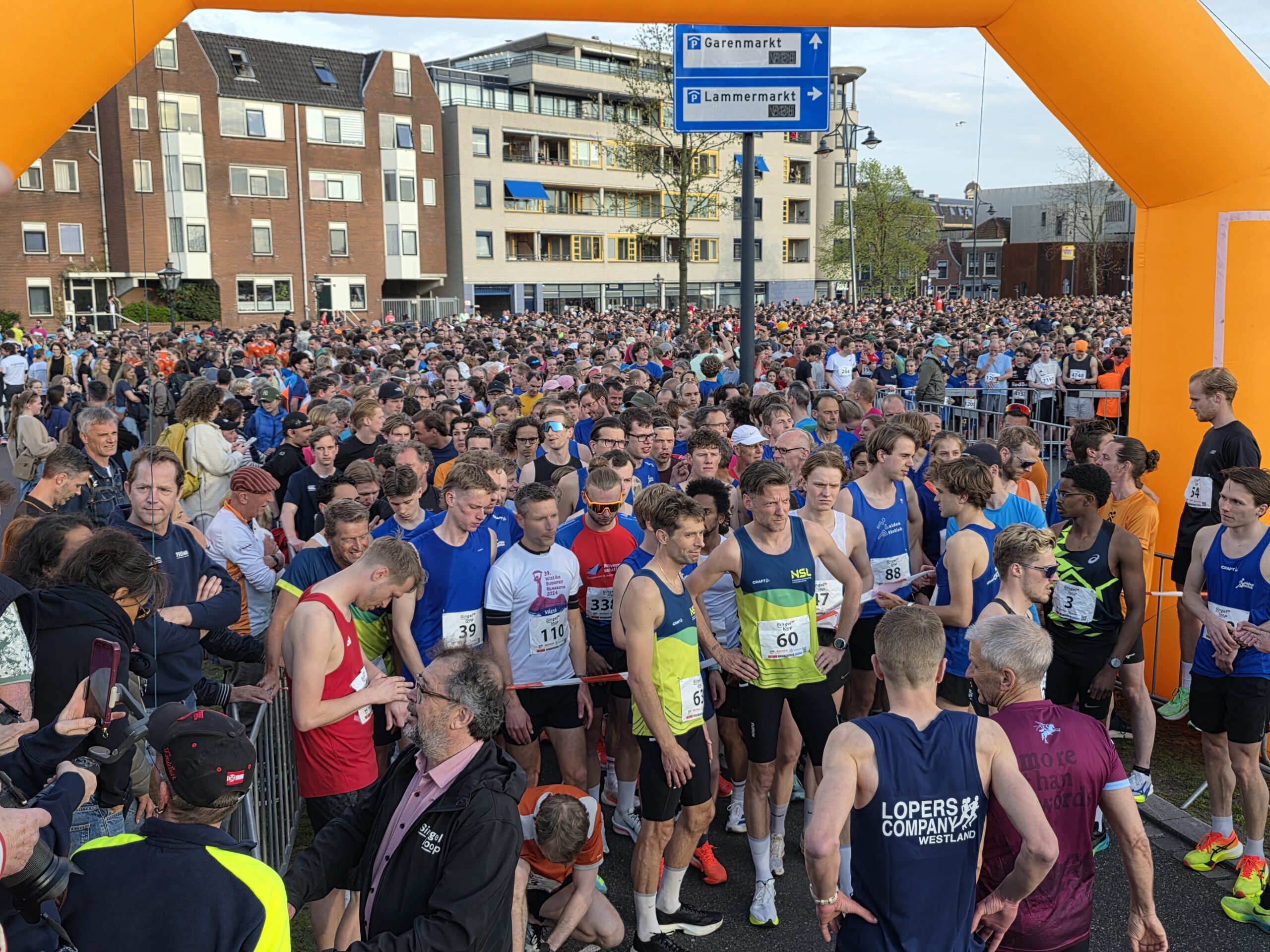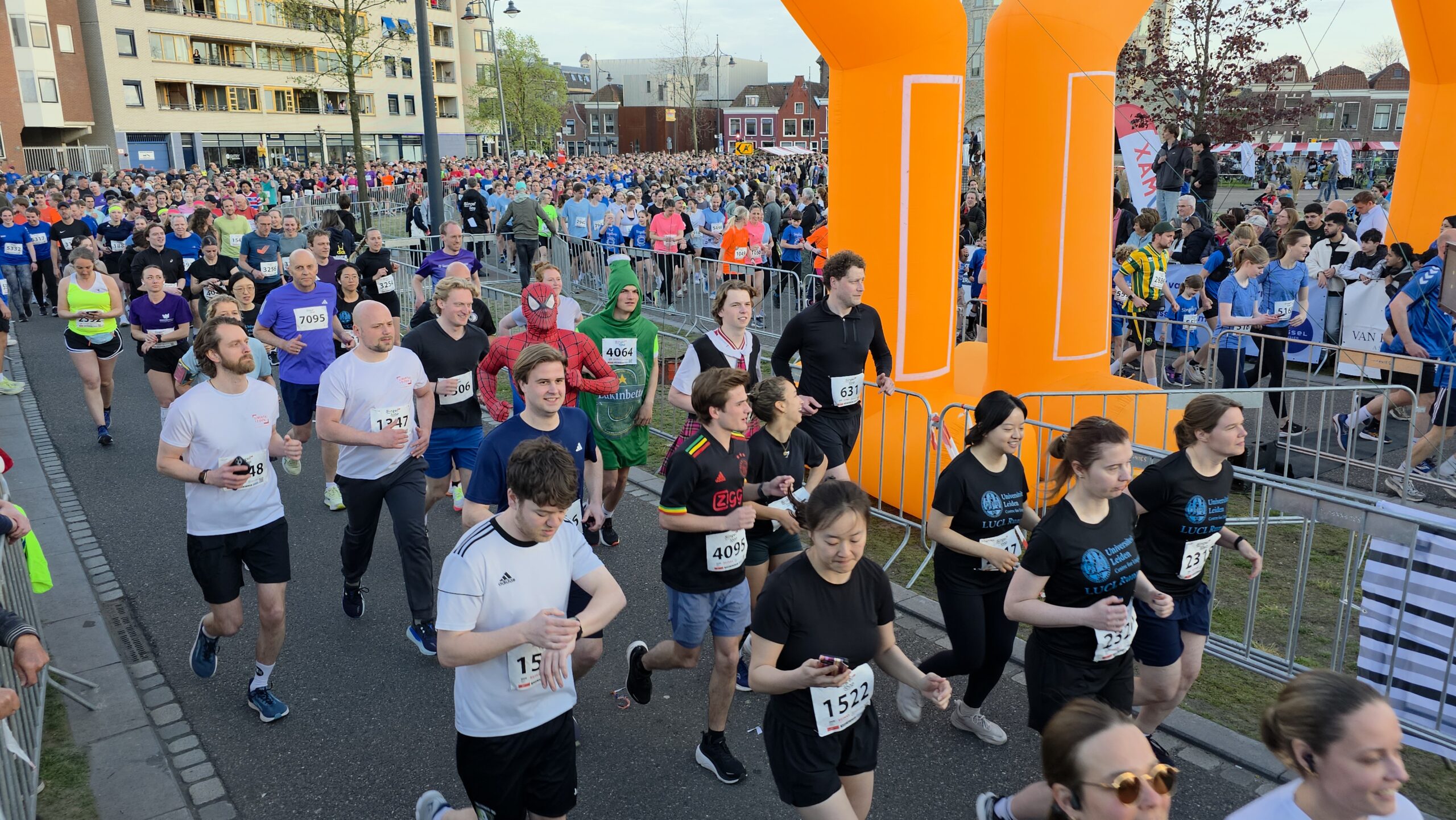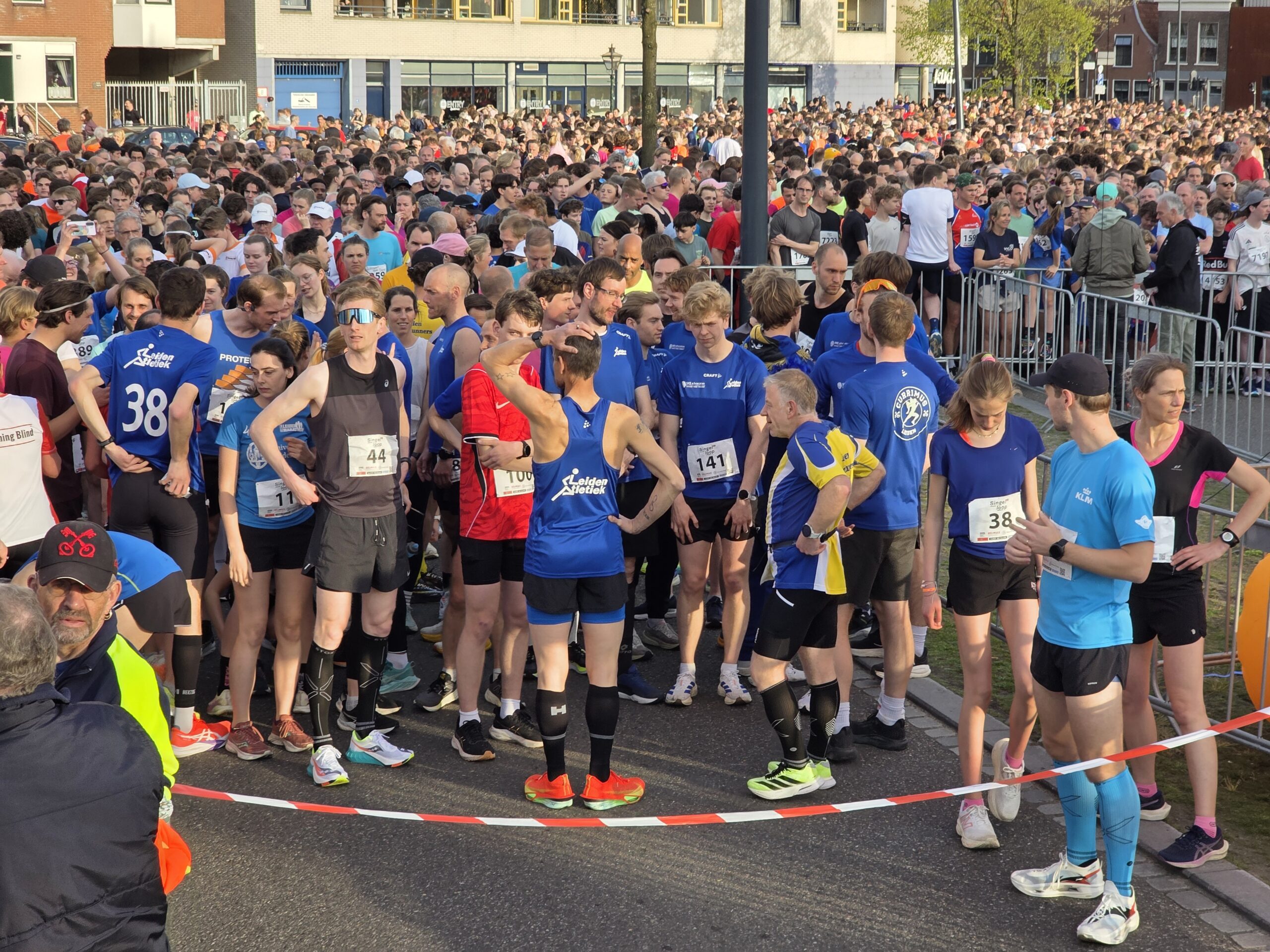 Lang nadat de toplopers uit het zicht waren verdwenen, stonden er nog deelnemers voor de start te dringen om weg te komen. Geen enkel probleem, want dat hoort er helemaal bij. Voorzitter Gertjan van Geen van de organisatie van de Singelloop Leiden: “De magie is toch wel een beetje de kneuterigheid ervan. Het is zo kleinschalig. Het is een hele korte afstand, het is een hele mooie afstand. Het is een heel mooi parcours om de stad heen. Het staat rijen dik met mensen die staan te kijken. Dus als je ‘m een keer hebt gelopen dan wil je dat volgend jaar weer doen. Want je voelt je gewoon een wereldster als je langsloopt.”