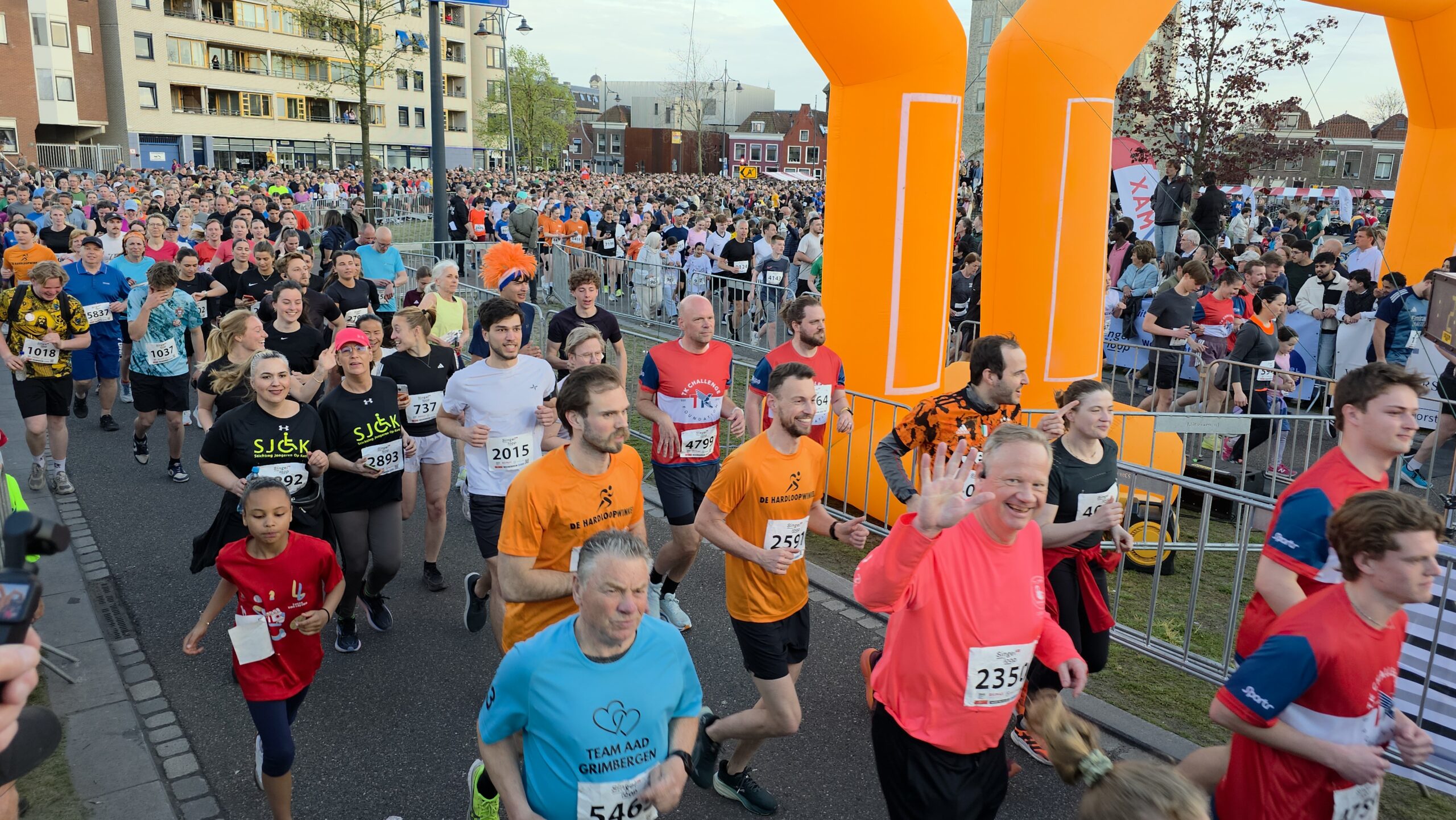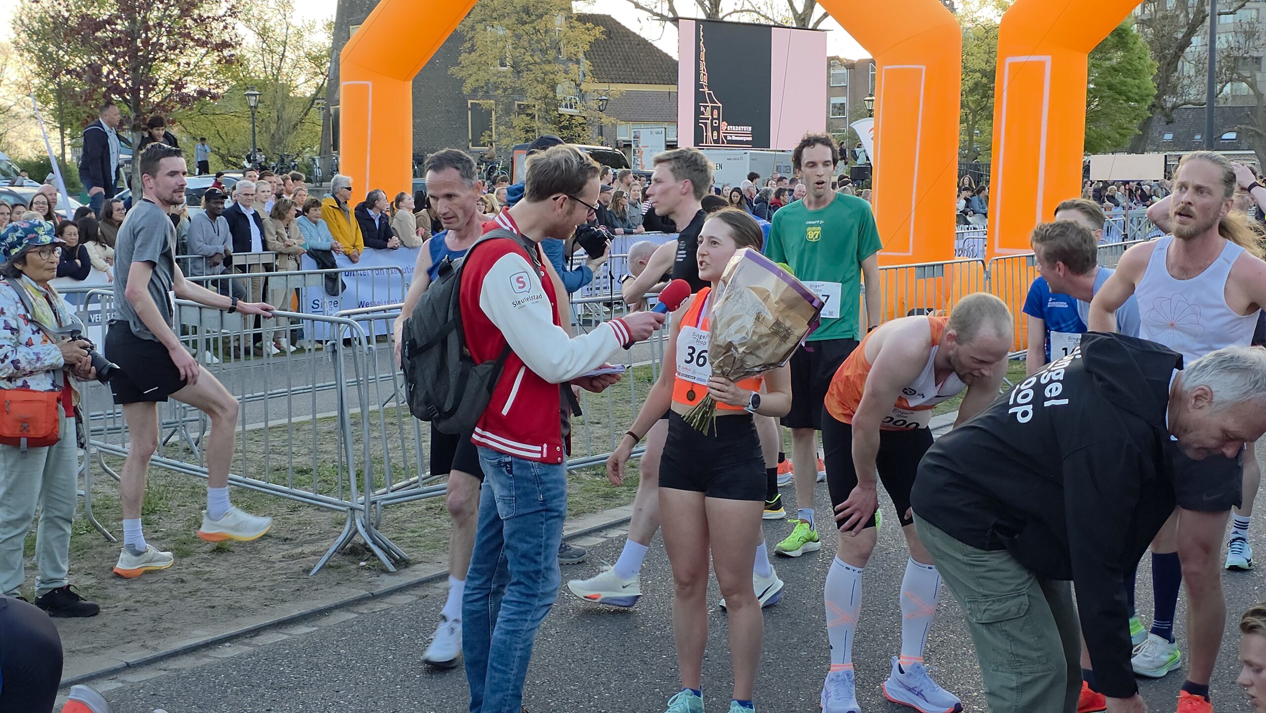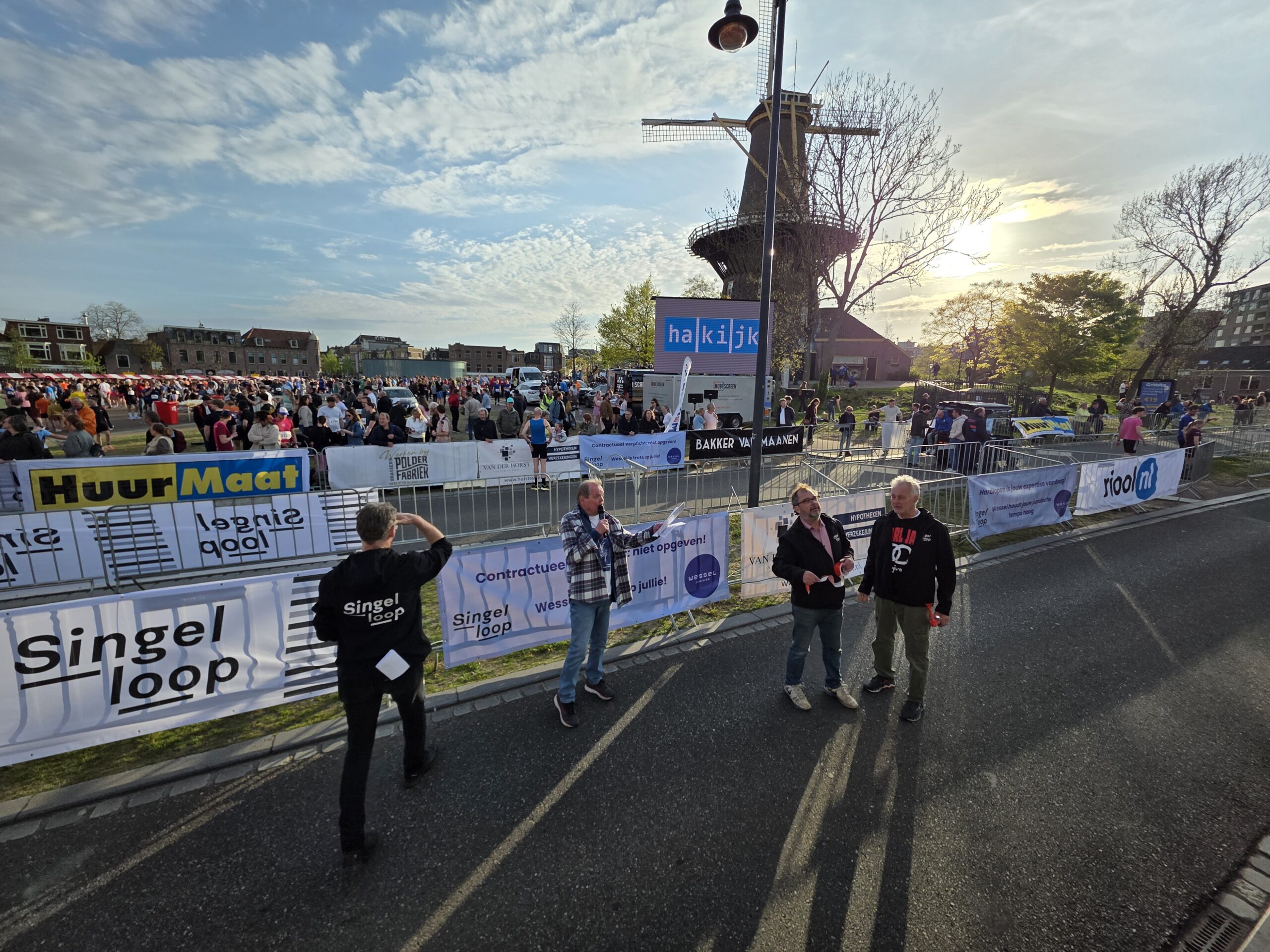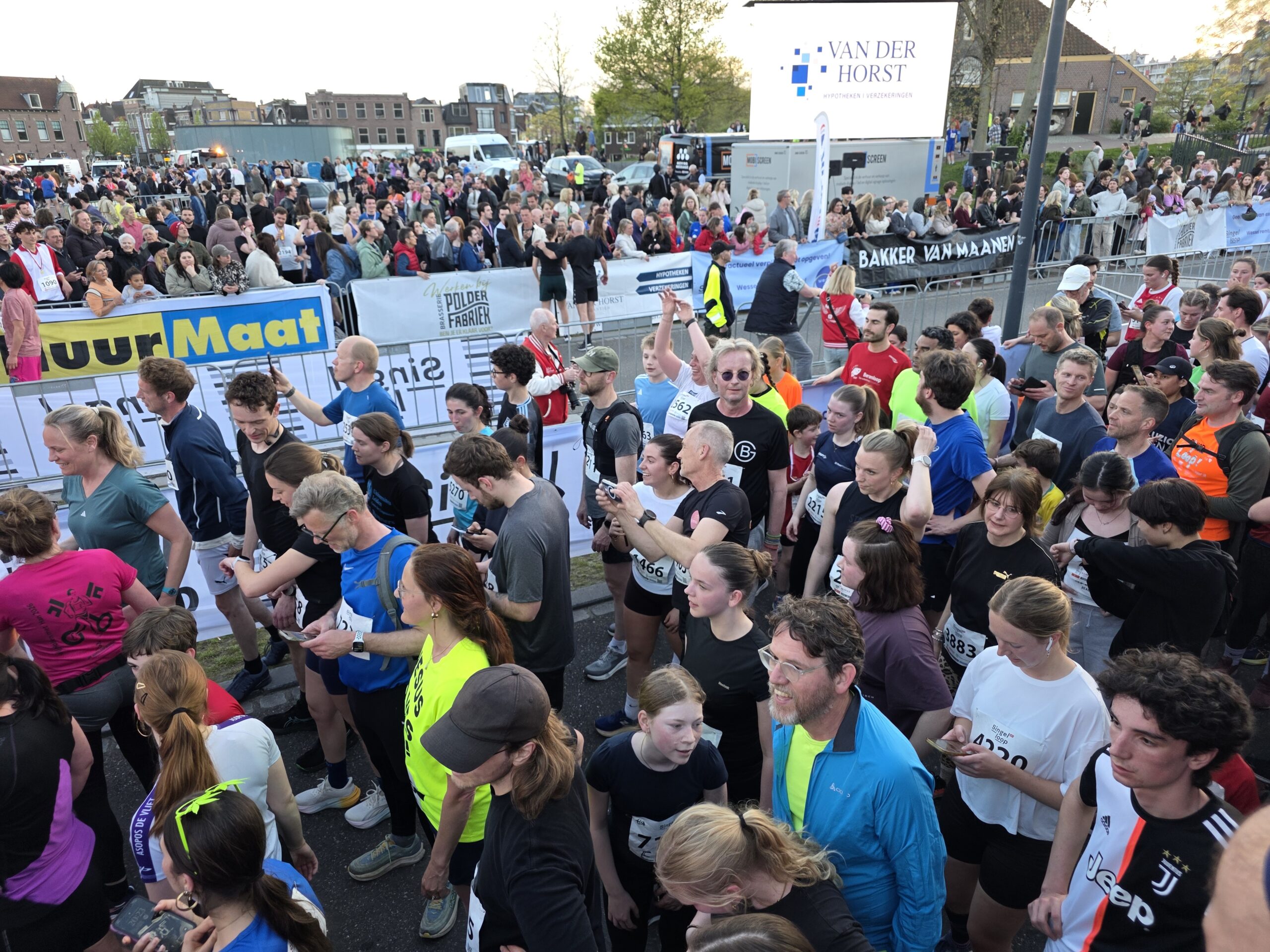 Lang nadat de toplopers uit het zicht waren verdwenen, stonden er nog deelnemers voor de start te dringen om weg te komen. Geen enkel probleem, want dat hoort er helemaal bij. Voorzitter Gertjan van Geen van de organisatie van de Singelloop Leiden: “De magie is toch wel een beetje de kneuterigheid ervan. Het is zo kleinschalig. Het is een hele korte afstand, het is een hele mooie afstand. Het is een heel mooi parcours om de stad heen. Het staat rijen dik met mensen die staan te kijken. Dus als je ‘m een keer hebt gelopen dan wil je dat volgend jaar weer doen. Want je voelt je gewoon een wereldster als je langsloopt.”