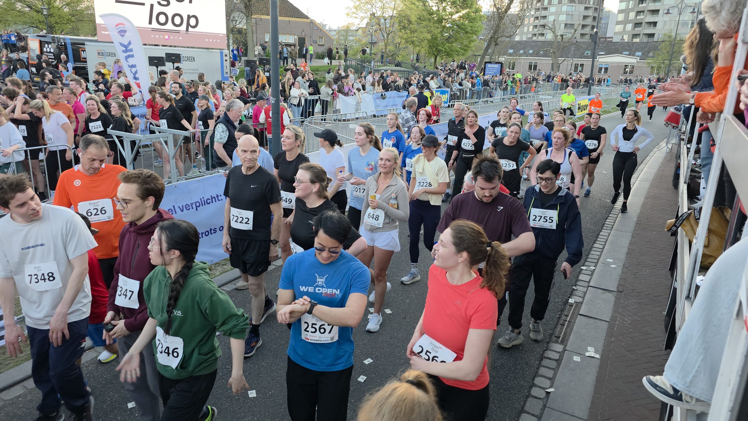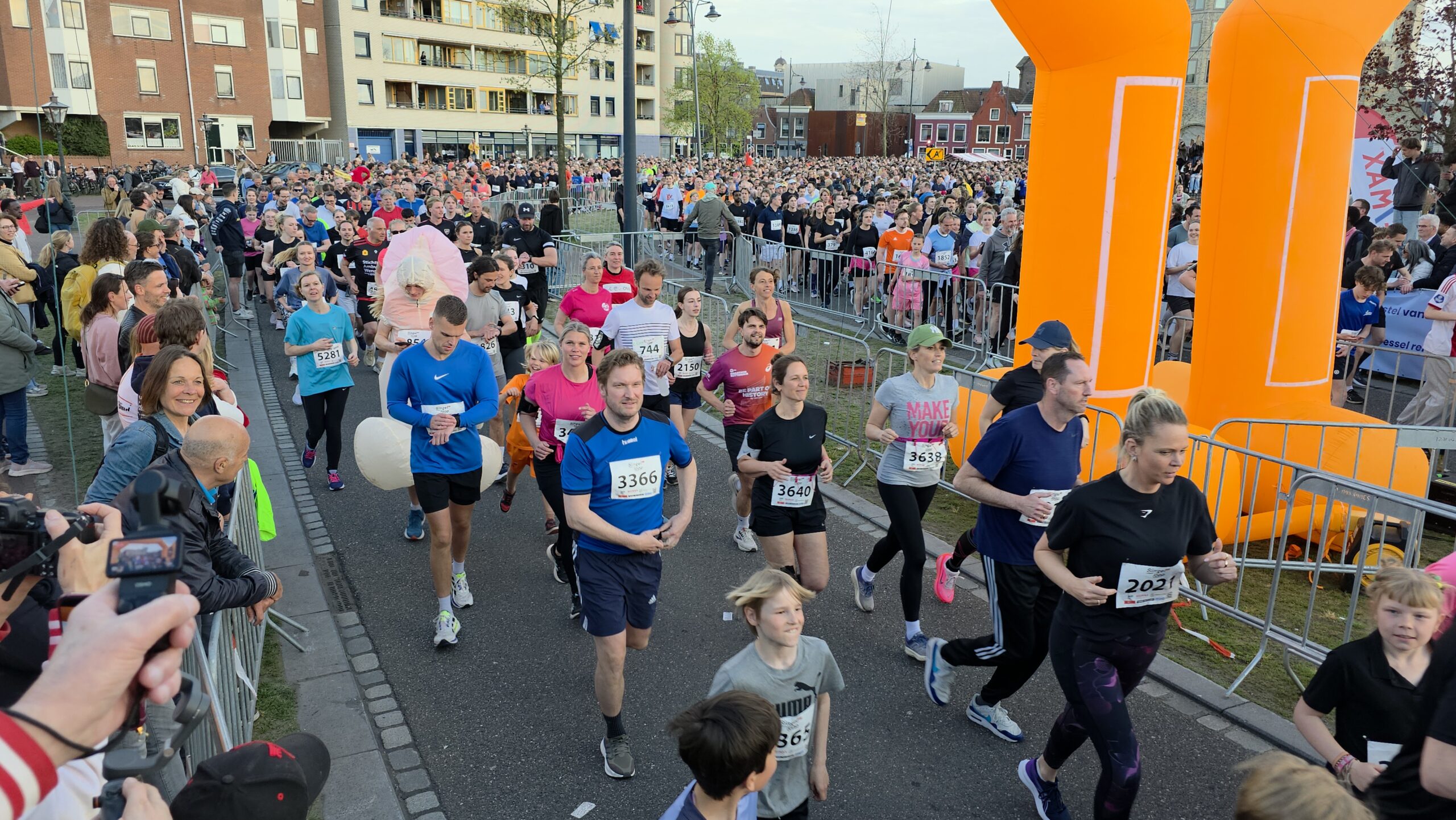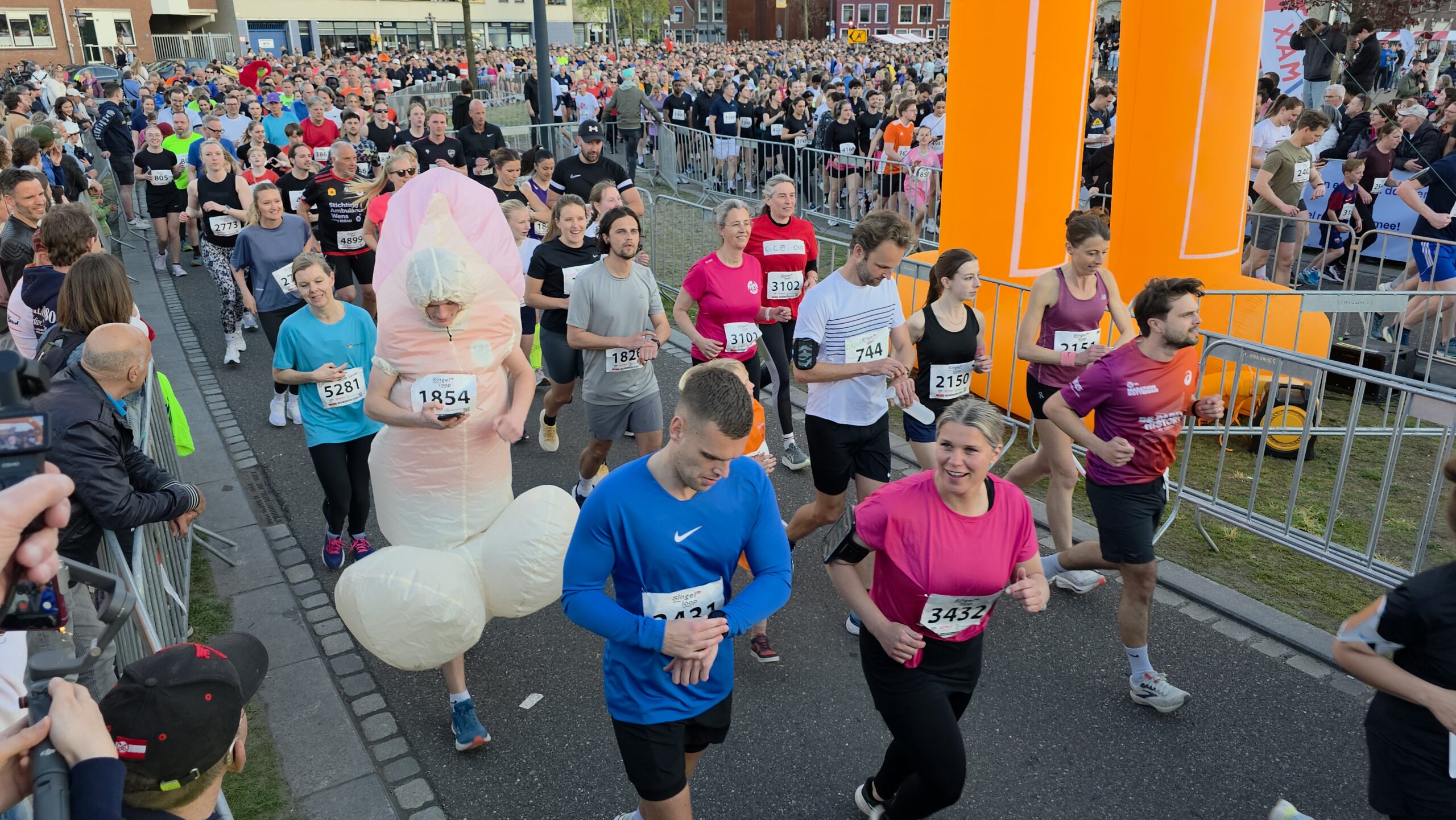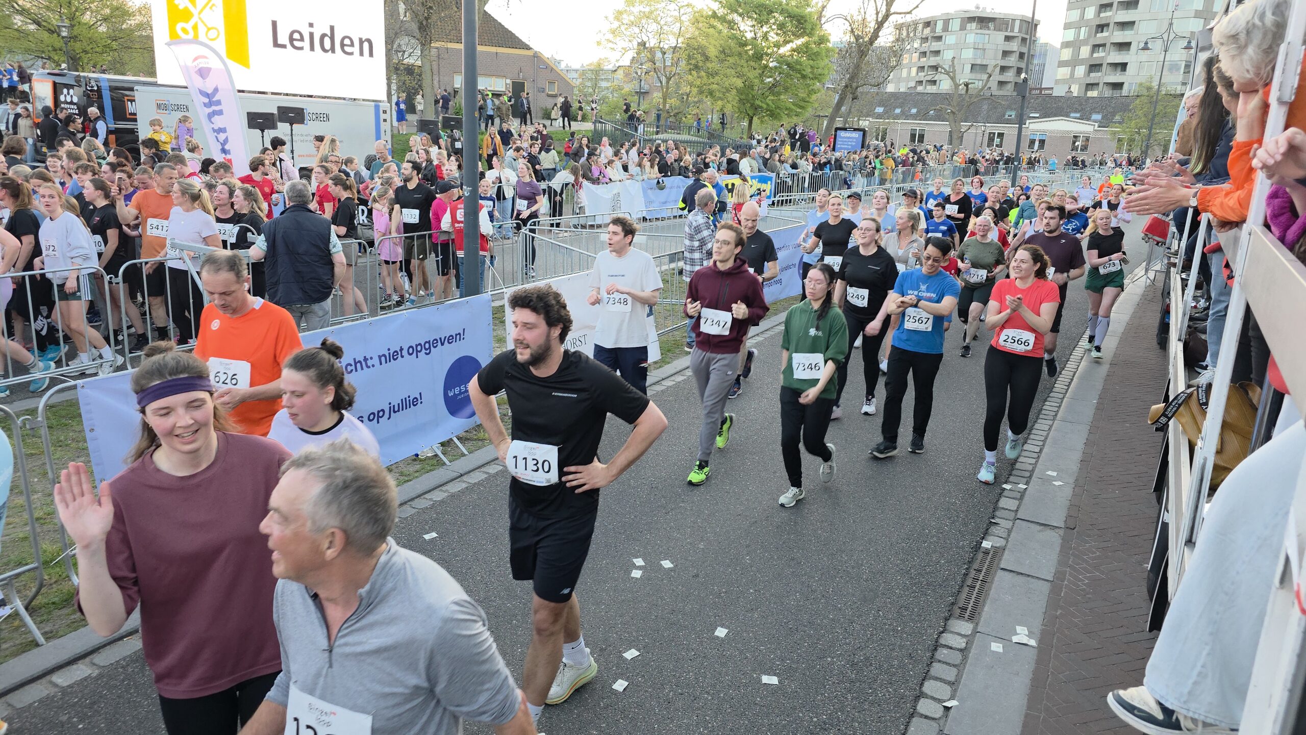 Lang nadat de toplopers uit het zicht waren verdwenen, stonden er nog deelnemers voor de start te dringen om weg te komen. Geen enkel probleem, want dat hoort er helemaal bij. Voorzitter Gertjan van Geen van de organisatie van de Singelloop Leiden: “De magie is toch wel een beetje de kneuterigheid ervan. Het is zo kleinschalig. Het is een hele korte afstand, het is een hele mooie afstand. Het is een heel mooi parcours om de stad heen. Het staat rijen dik met mensen die staan te kijken. Dus als je ‘m een keer hebt gelopen dan wil je dat volgend jaar weer doen. Want je voelt je gewoon een wereldster als je langsloopt.”