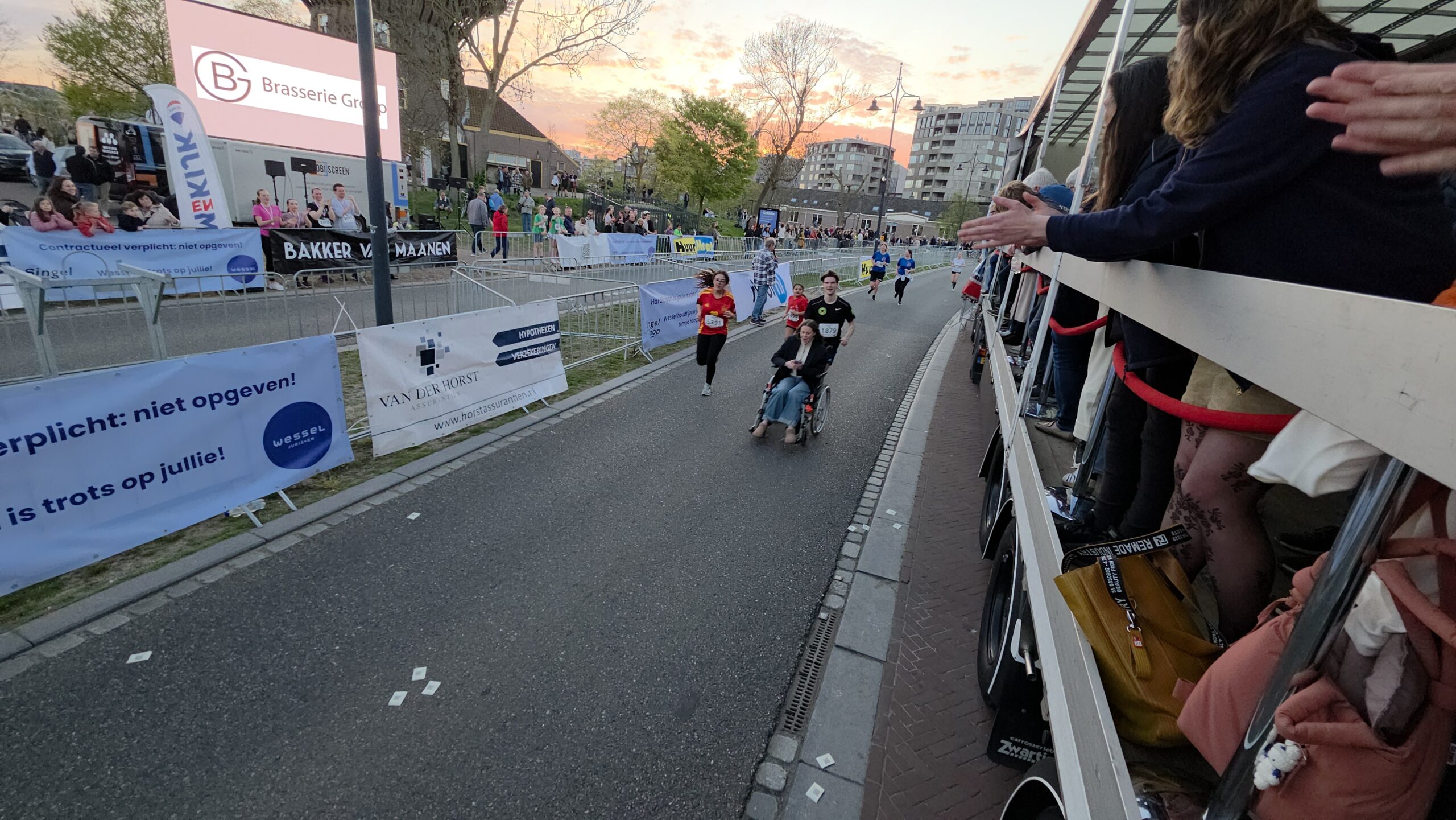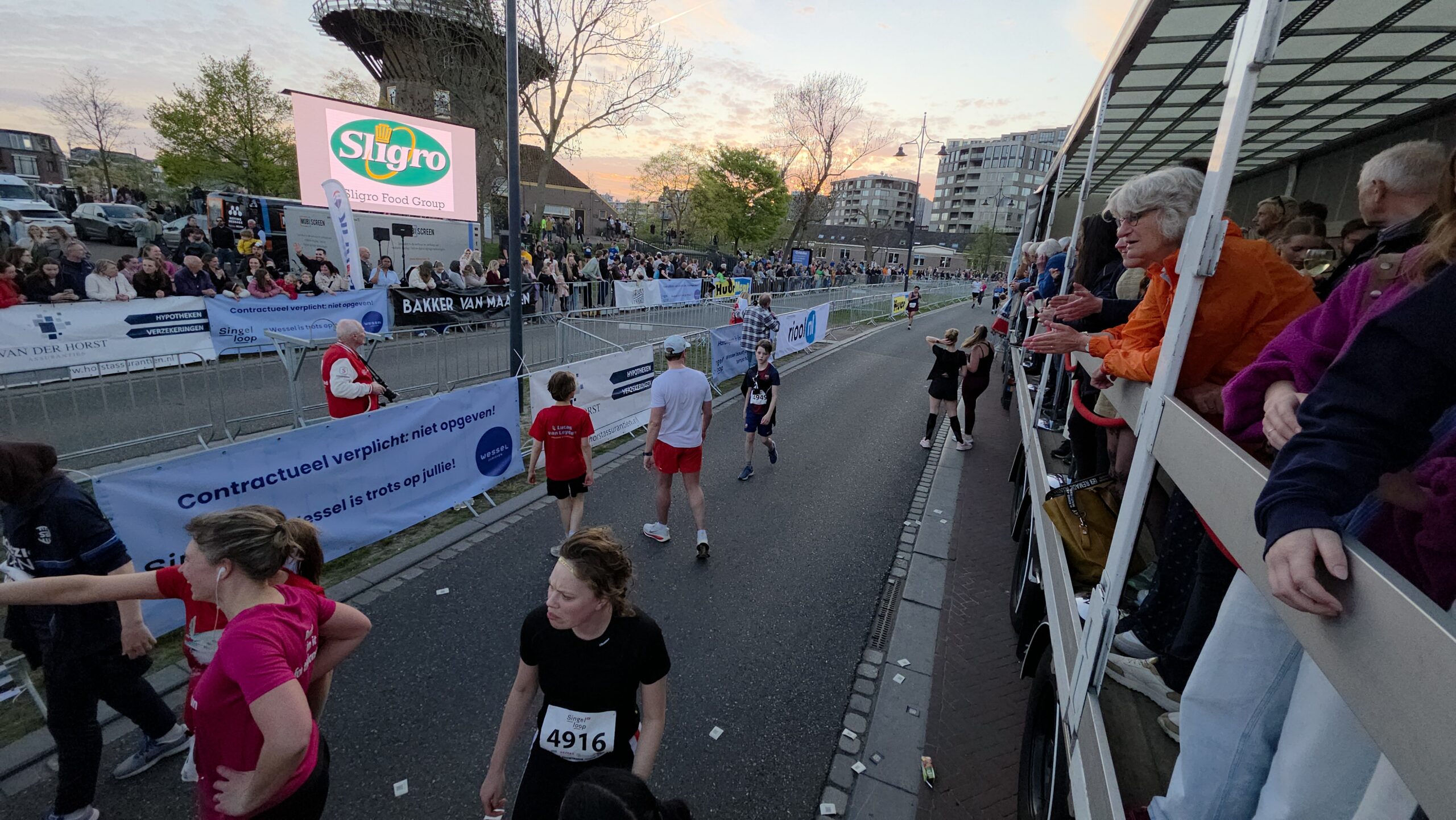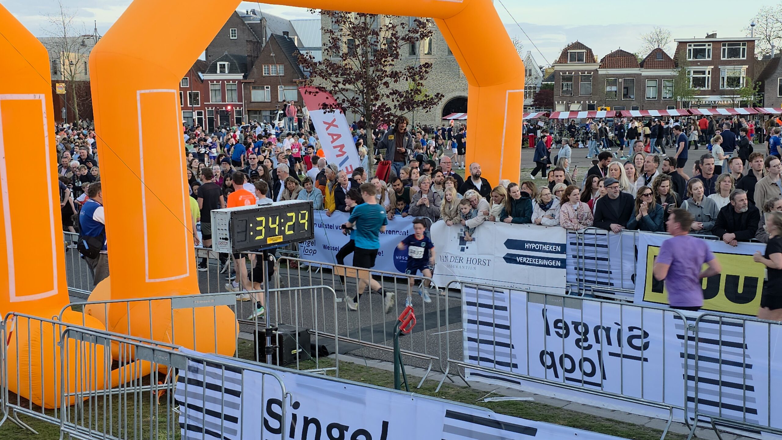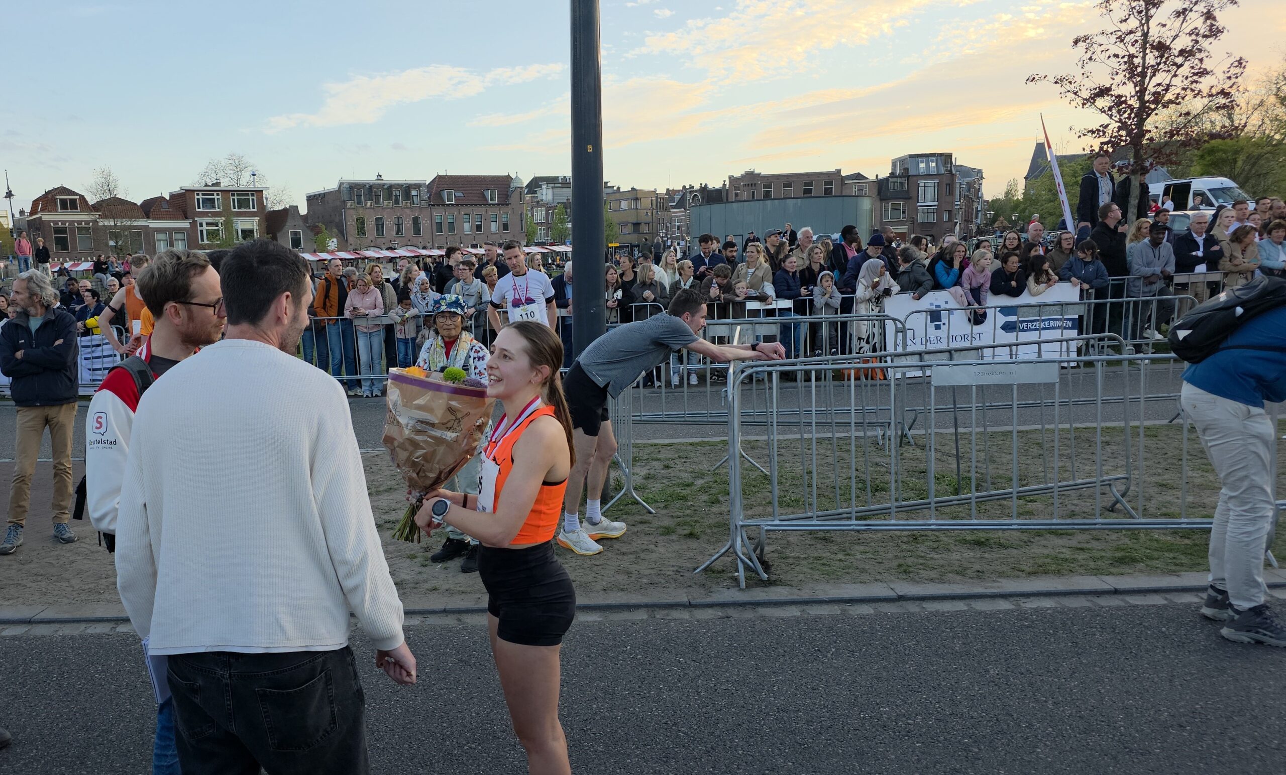 Lang nadat de toplopers uit het zicht waren verdwenen, stonden er nog deelnemers voor de start te dringen om weg te komen. Geen enkel probleem, want dat hoort er helemaal bij. Voorzitter Gertjan van Geen van de organisatie van de Singelloop Leiden: “De magie is toch wel een beetje de kneuterigheid ervan. Het is zo kleinschalig. Het is een hele korte afstand, het is een hele mooie afstand. Het is een heel mooi parcours om de stad heen. Het staat rijen dik met mensen die staan te kijken. Dus als je ‘m een keer hebt gelopen dan wil je dat volgend jaar weer doen. Want je voelt je gewoon een wereldster als je langsloopt.”