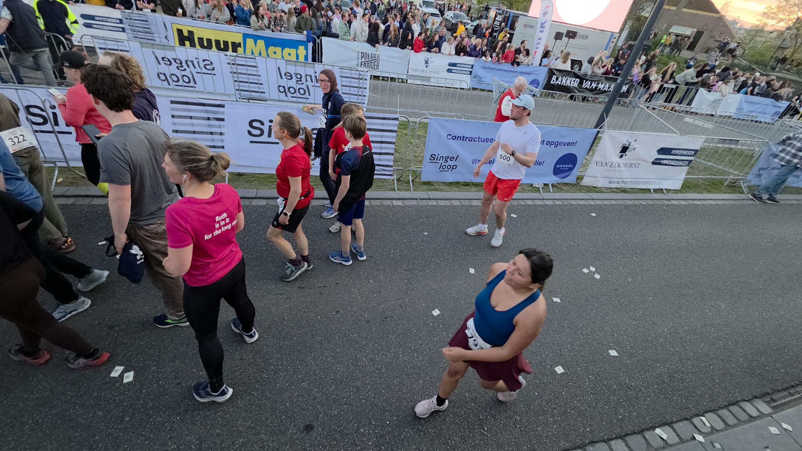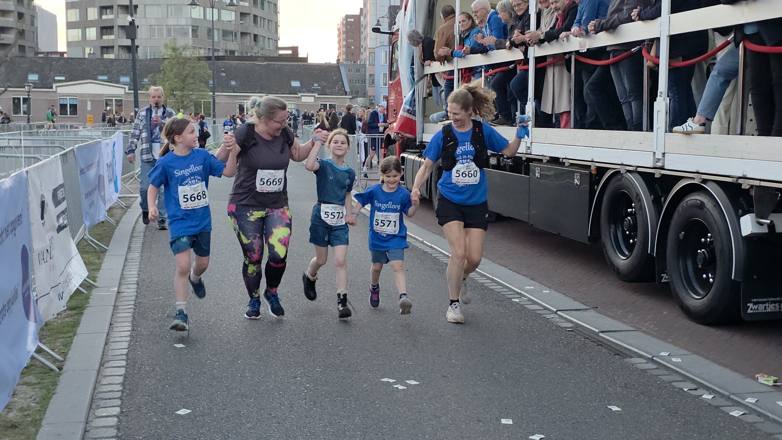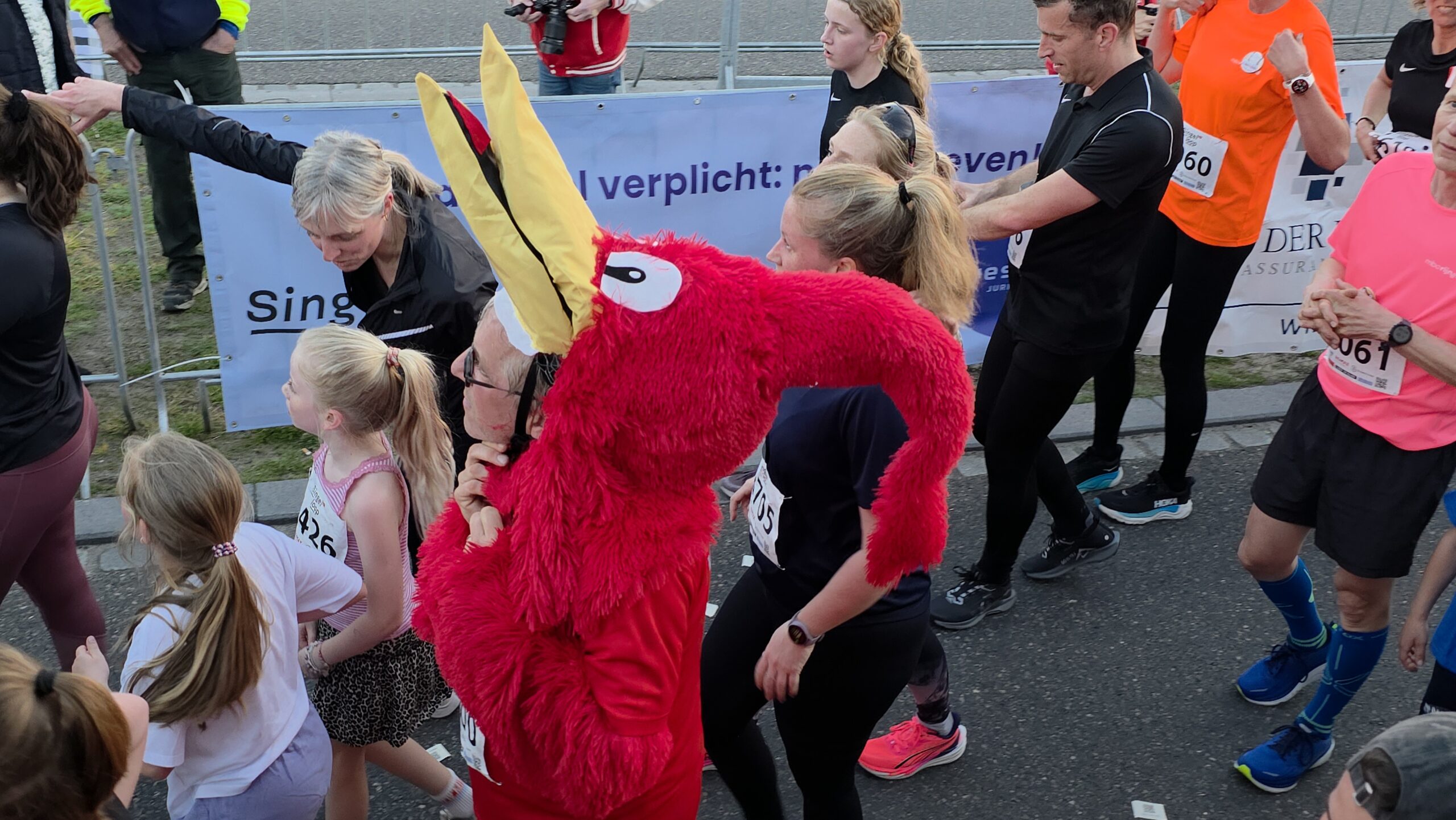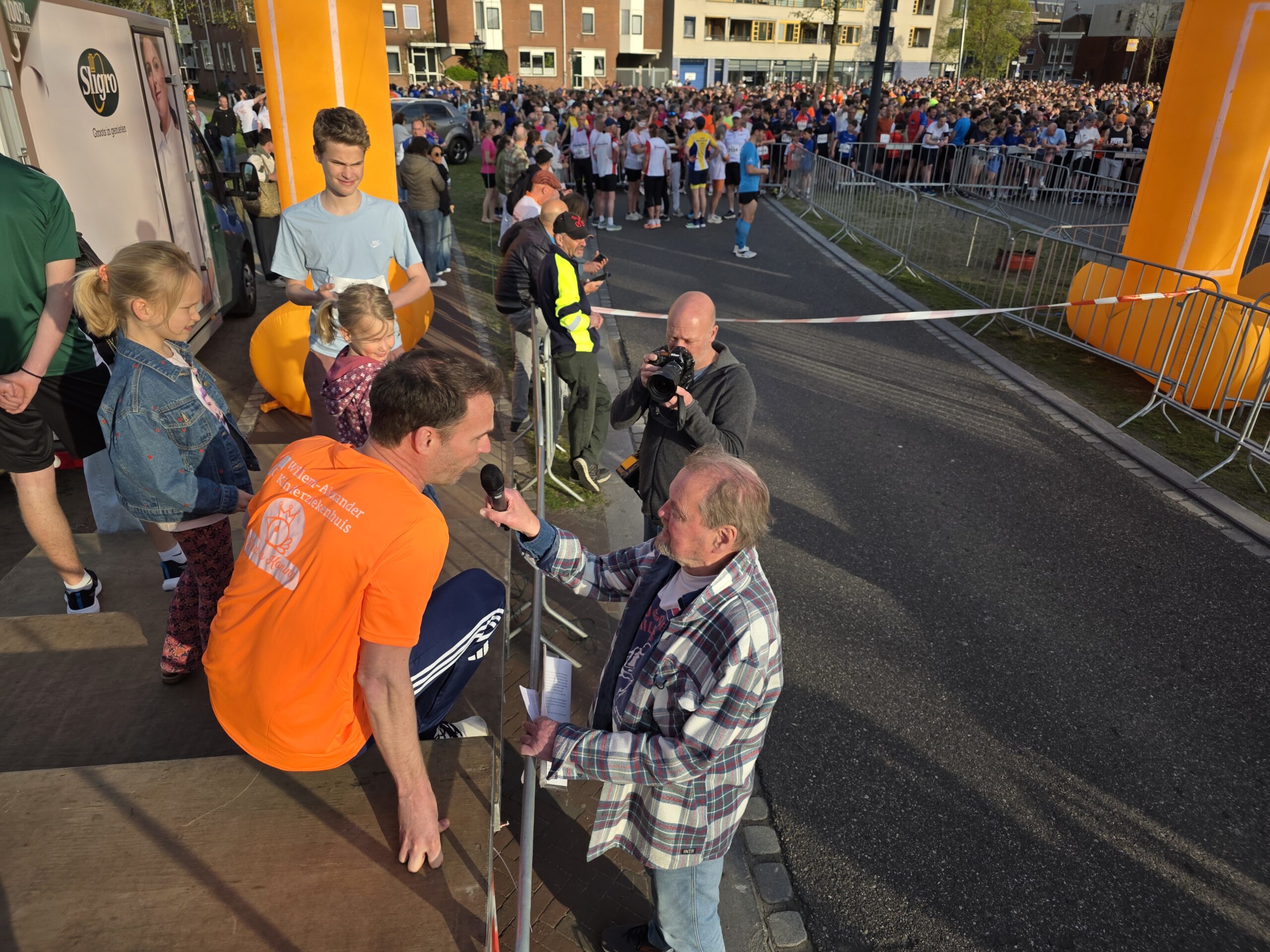 Naast de toplopers staan er natuurlijk vooral veel mensen aan de start voor wie meedoen belangrijker is dan winnen. Zoals Nicole en haar dochters Eliza en Iris. Nicole: “Ik hoop het vol te kunnen houden. We proberen gewoon rustig aan te doen, dan halen we de finish wel.” Het vele publiek langs de kant helpt daarbij natuurlijk wel. Eliza is van plan veel te gaan zwaaien en Iris gaat op de drukke stukken net even wat harder rennen, om te laten zien wat ze kan.