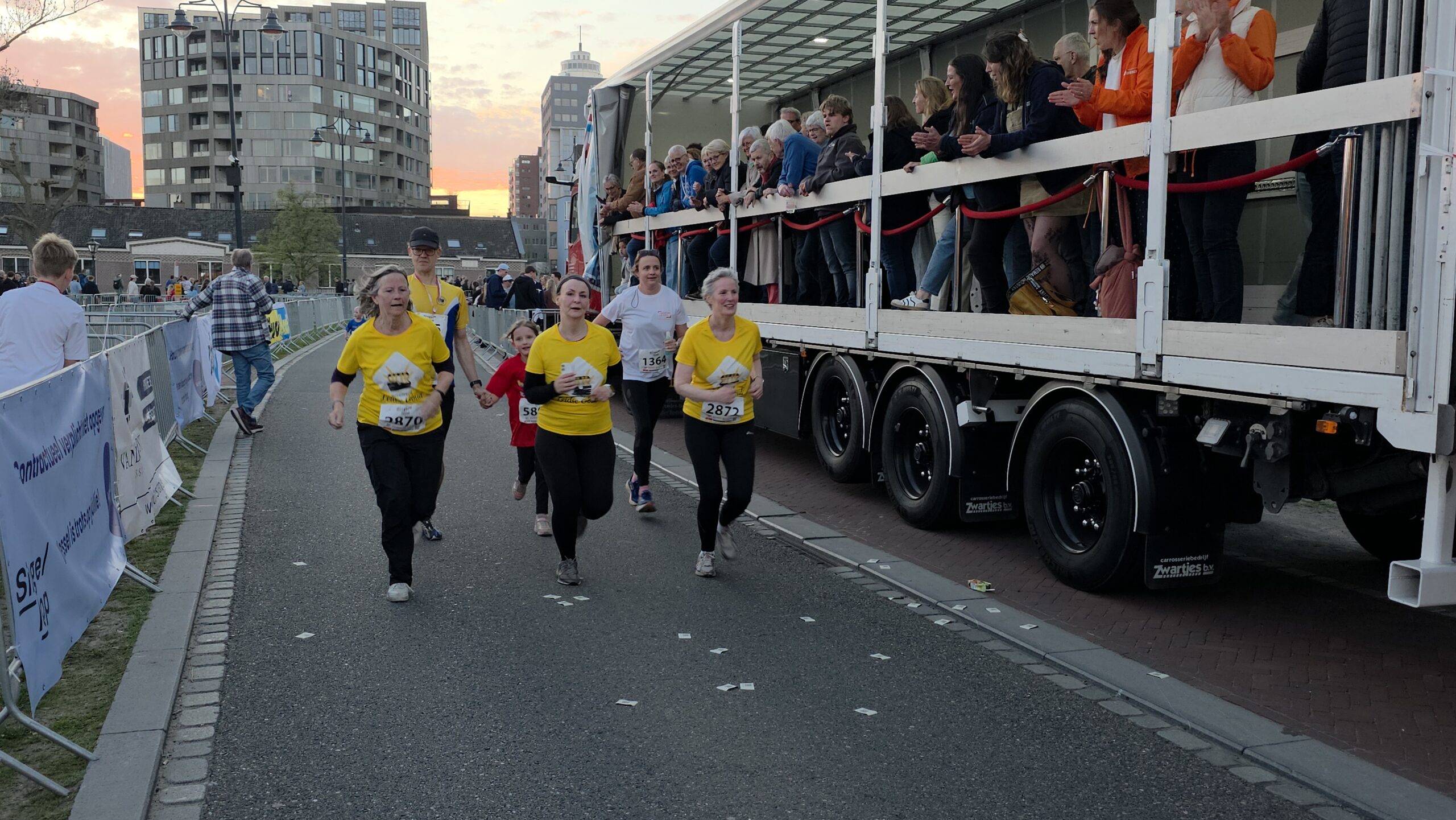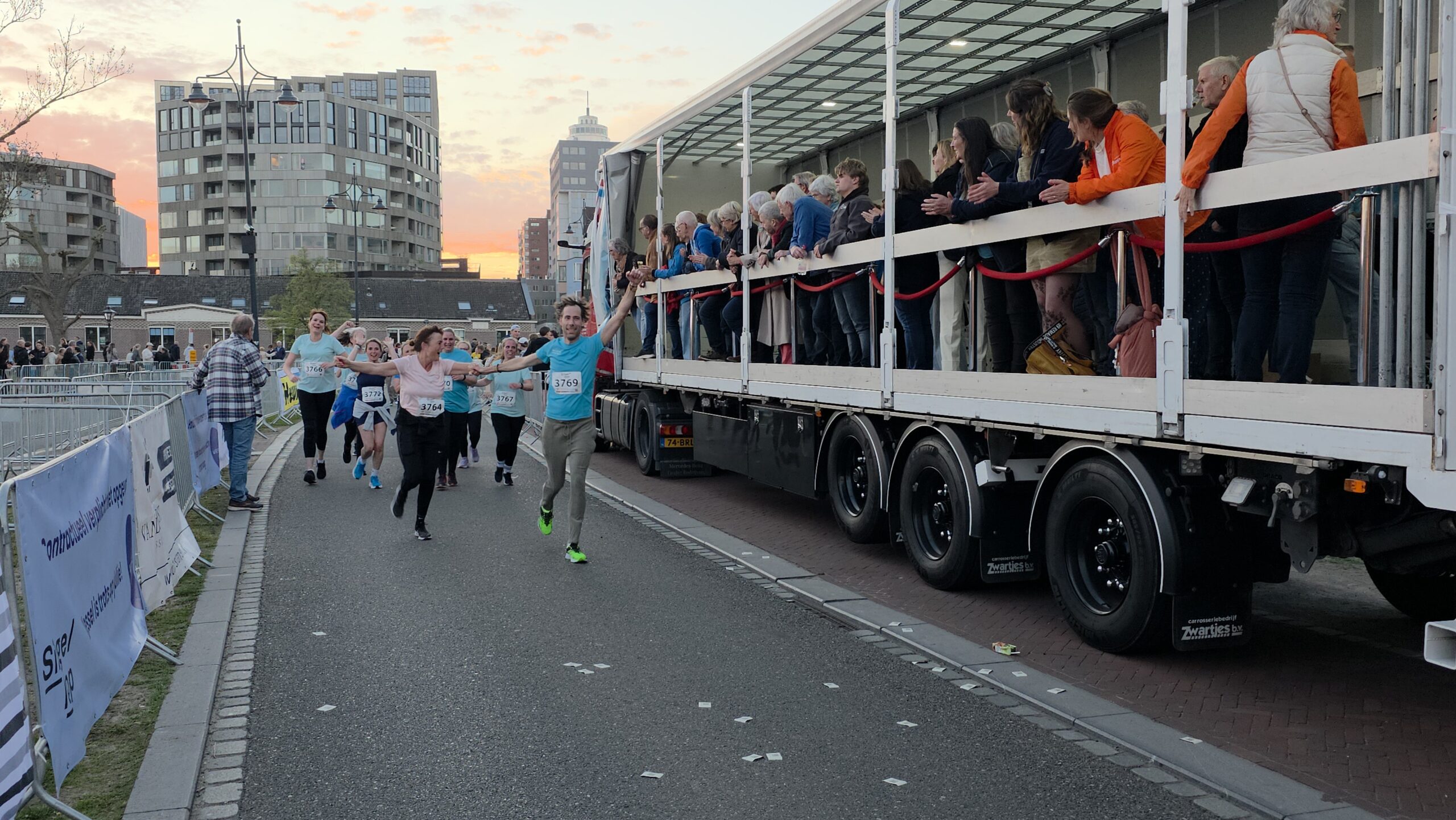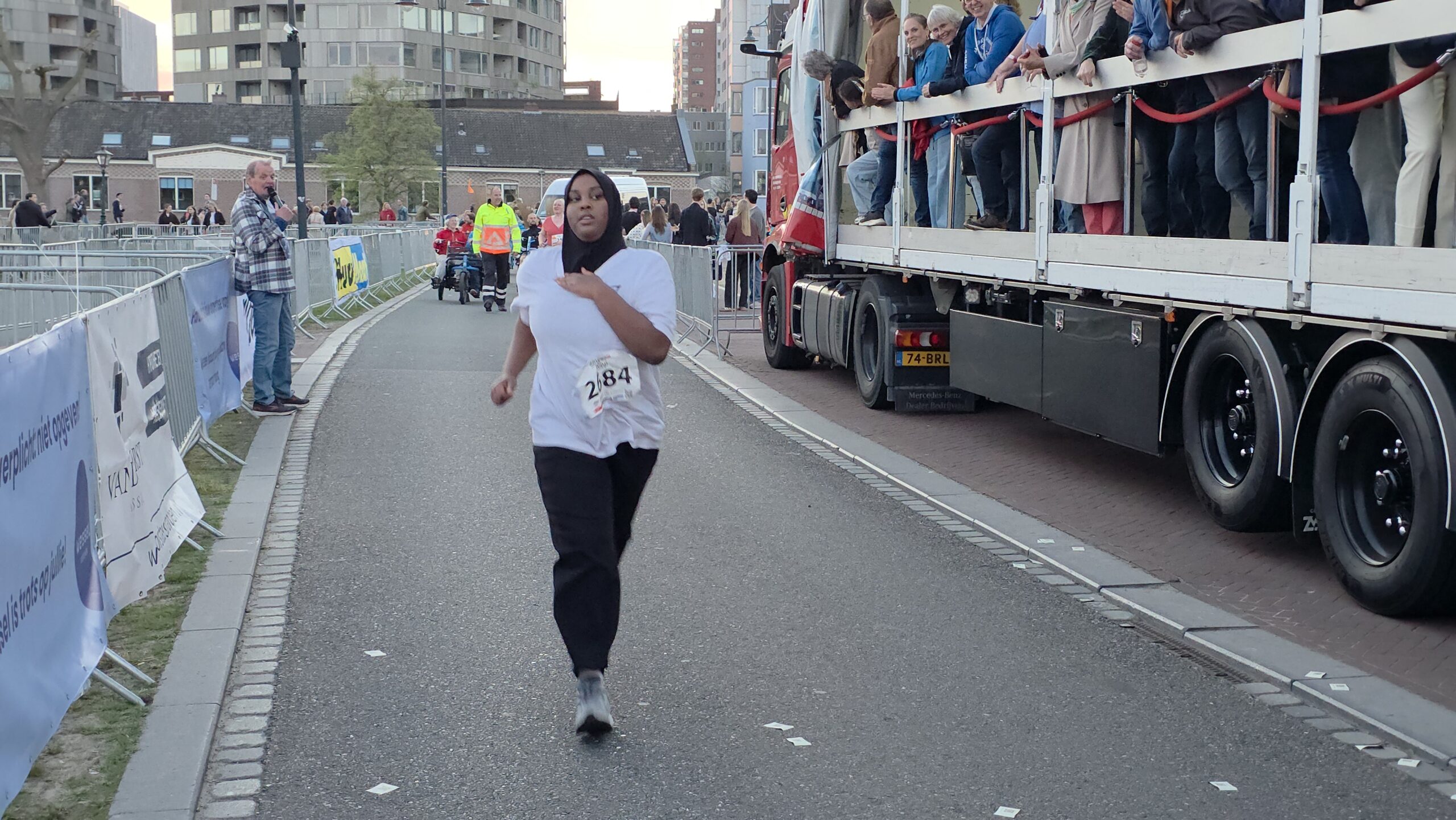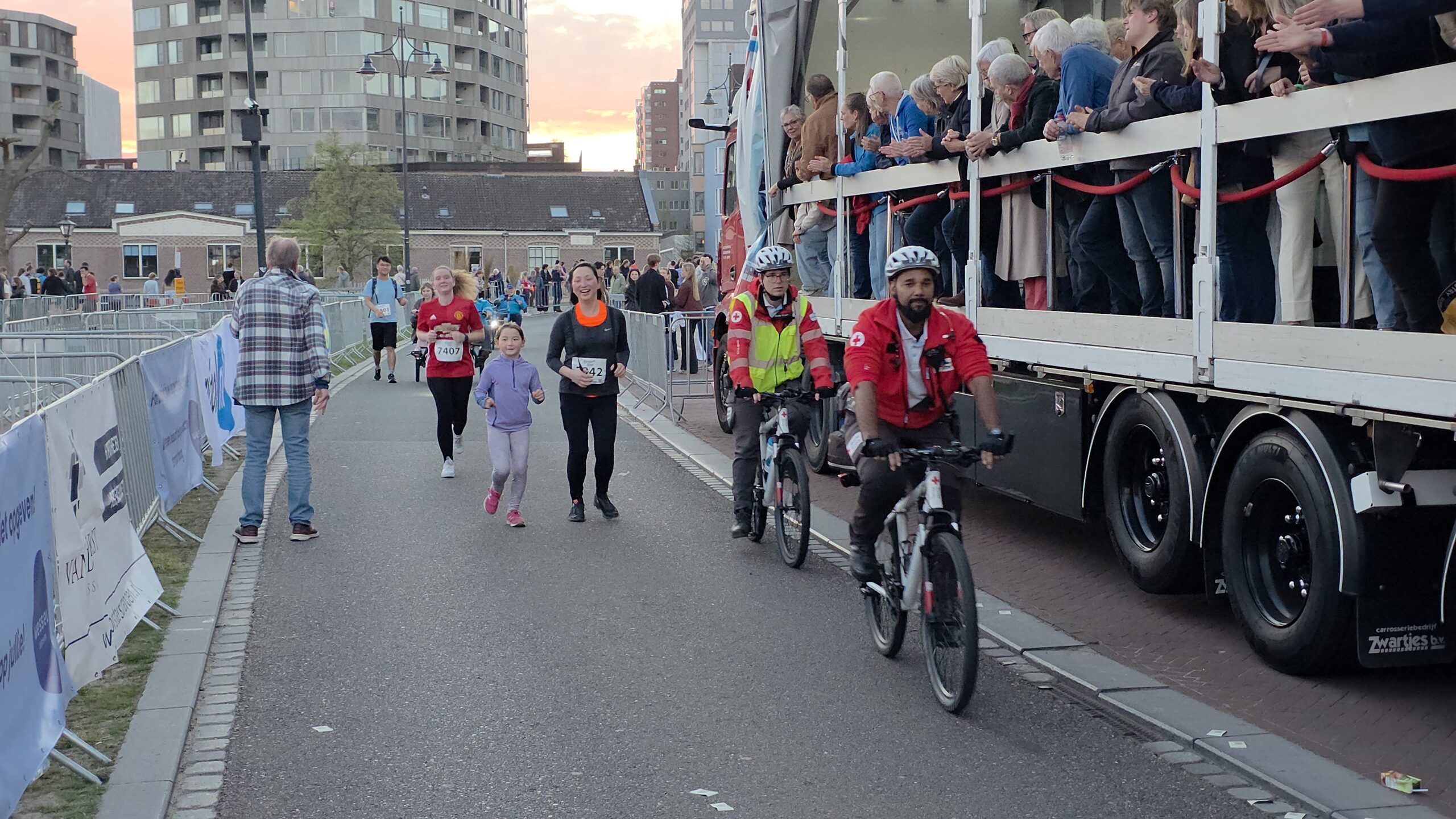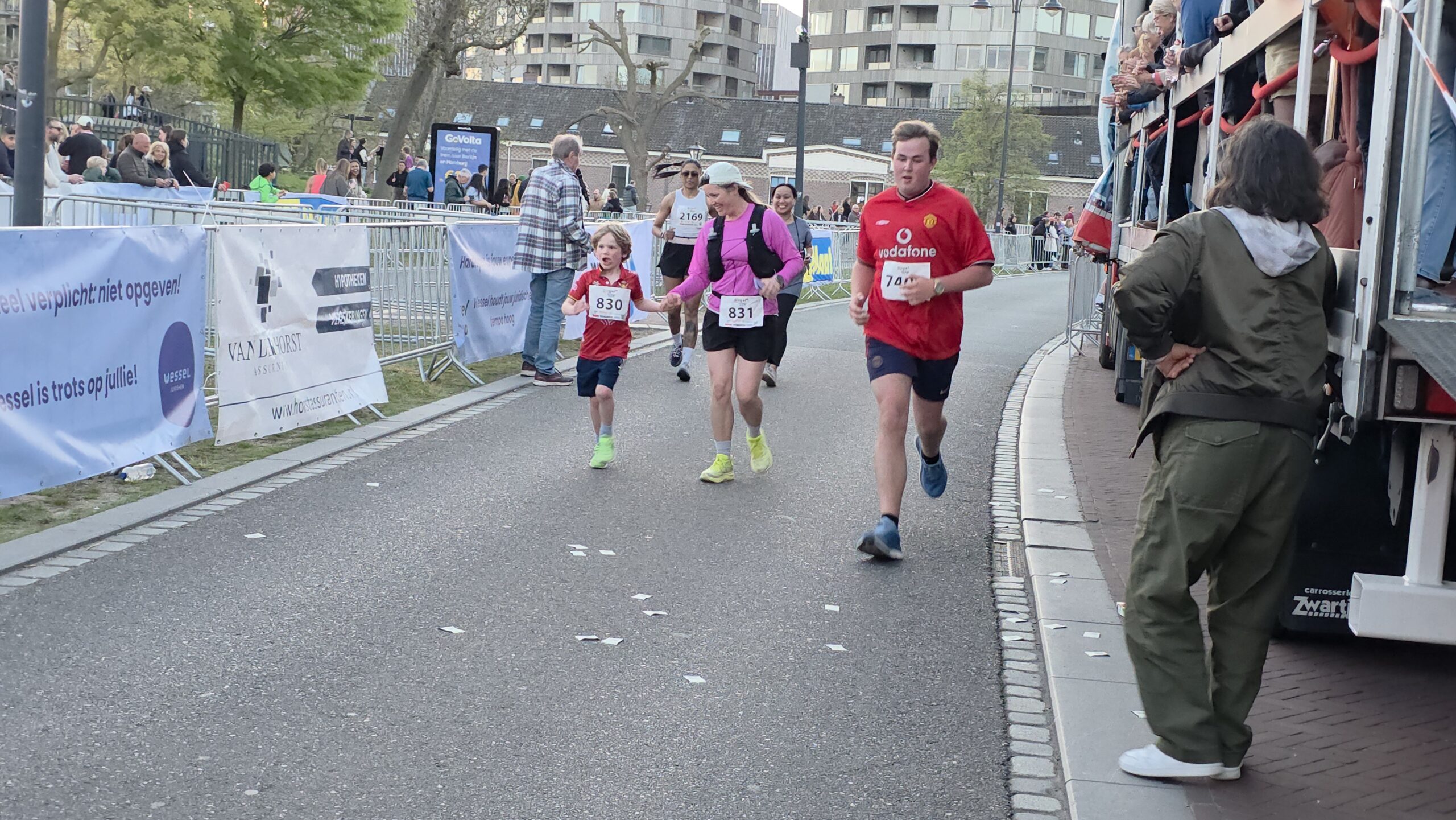 Naast de toplopers staan er natuurlijk vooral veel mensen aan de start voor wie meedoen belangrijker is dan winnen. Zoals Nicole en haar dochters Eliza en Iris. Nicole: “Ik hoop het vol te kunnen houden. We proberen gewoon rustig aan te doen, dan halen we de finish wel.” Het vele publiek langs de kant helpt daarbij natuurlijk wel. Eliza is van plan veel te gaan zwaaien en Iris gaat op de drukke stukken net even wat harder rennen, om te laten zien wat ze kan.