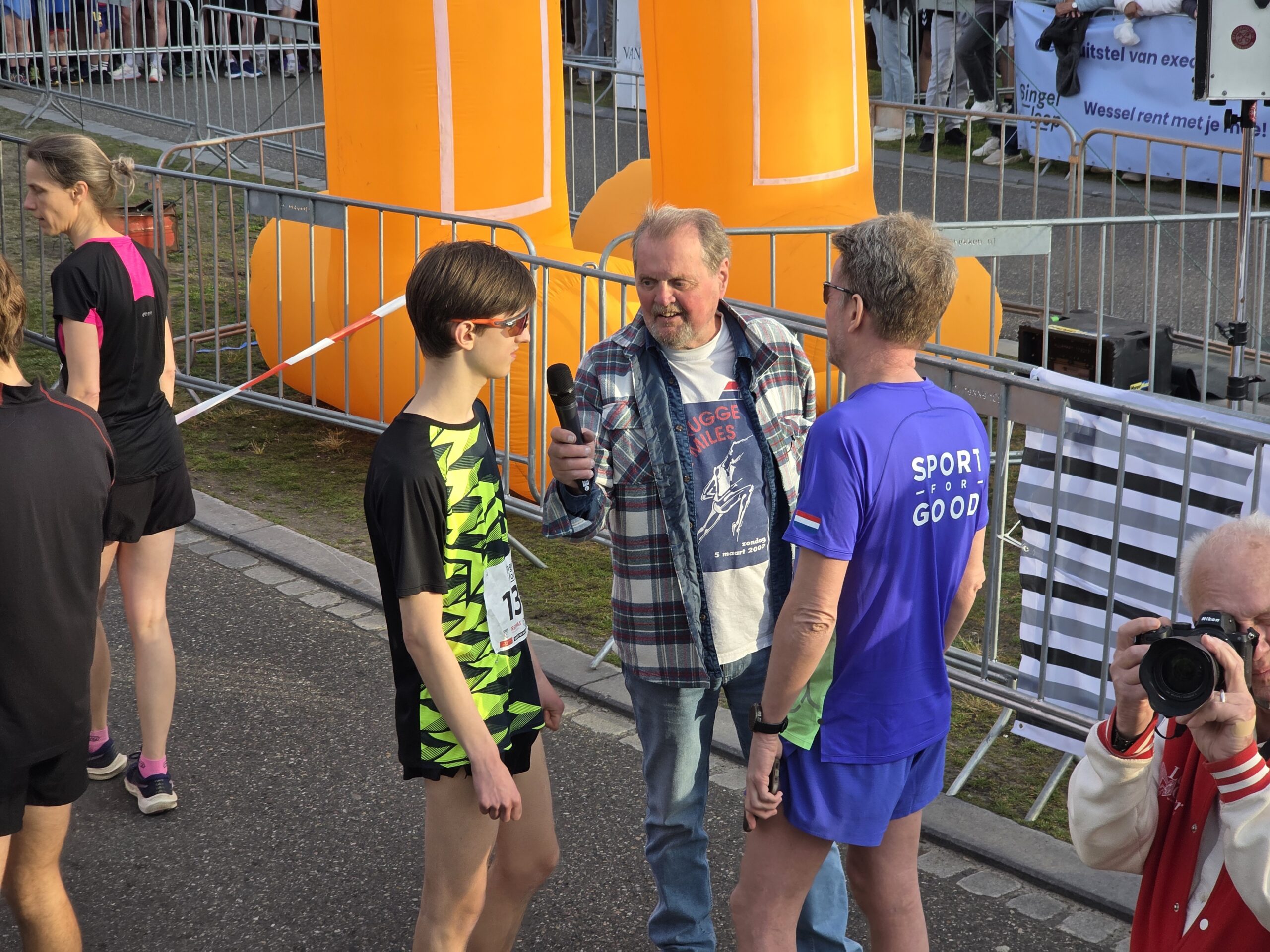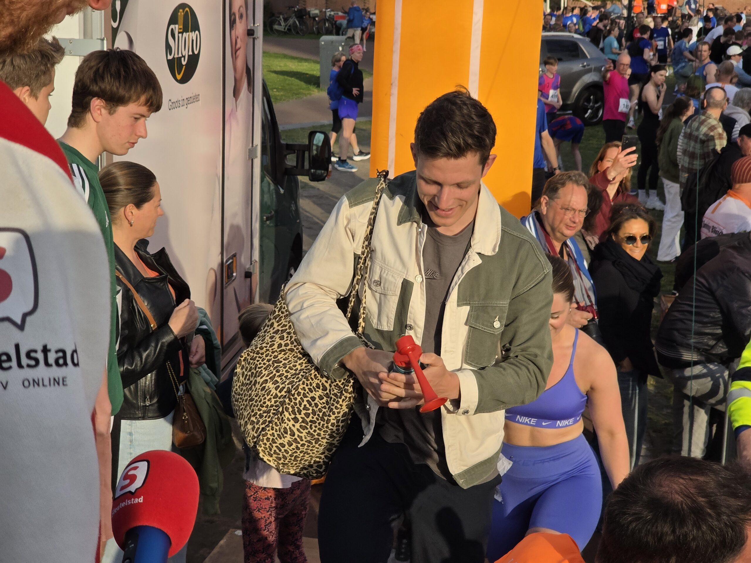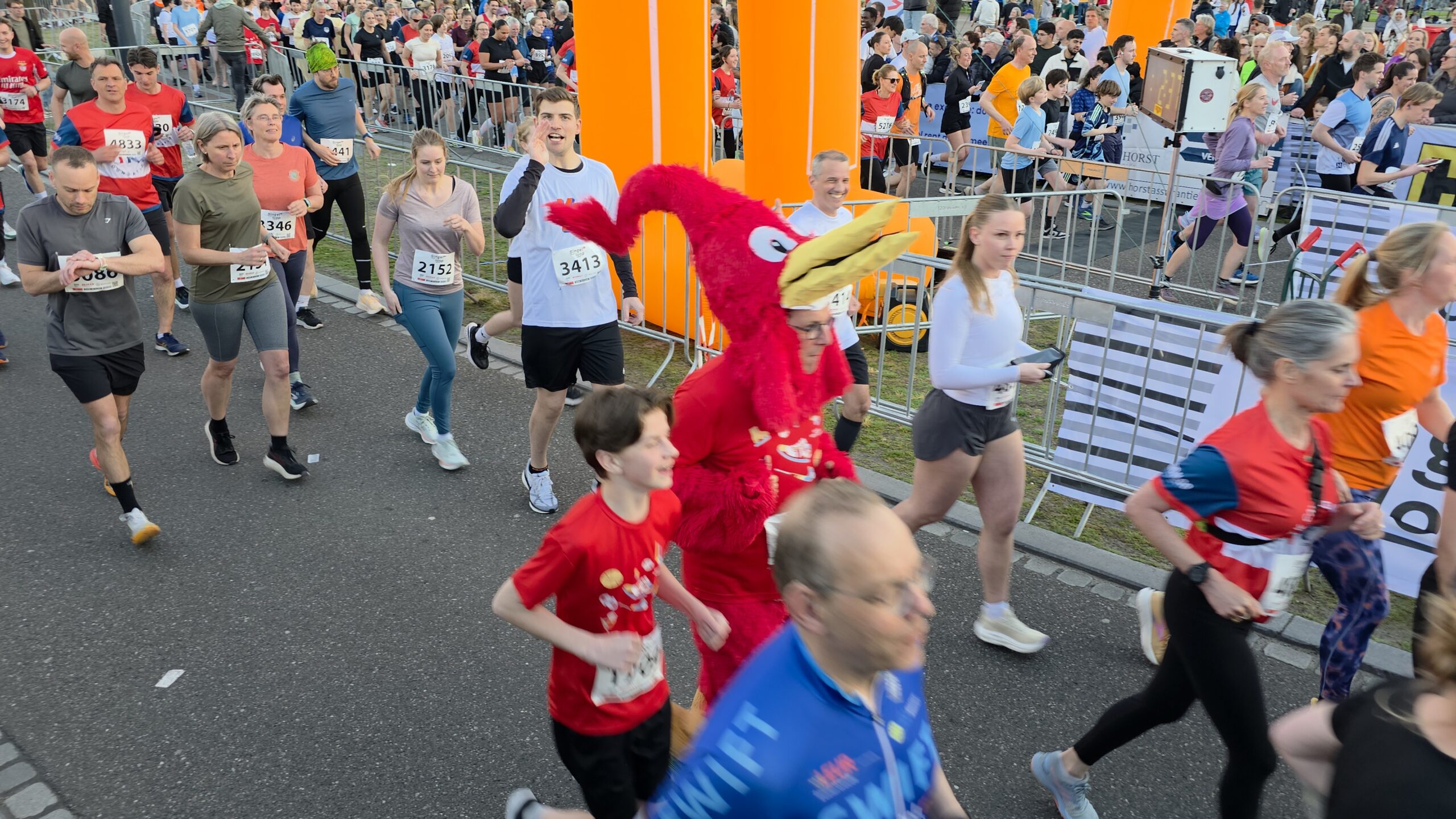 Bij prachtig loopweer toeterde Tijmen Snel de deelnemers op gang. Als schaatser heeft hij wel enige ervaring met startschoten, maar niet op deze manier. “Normaal sta ik aan de andere kant natuurlijk, dus ik heb geen idee hoe ik het startschot moet geven. Maar ik ga maar gewoon kijken naar het aftellen en dan toeteren. Als de mensen beginnen te lopen dat weet ik dat het goed is gegaan.”