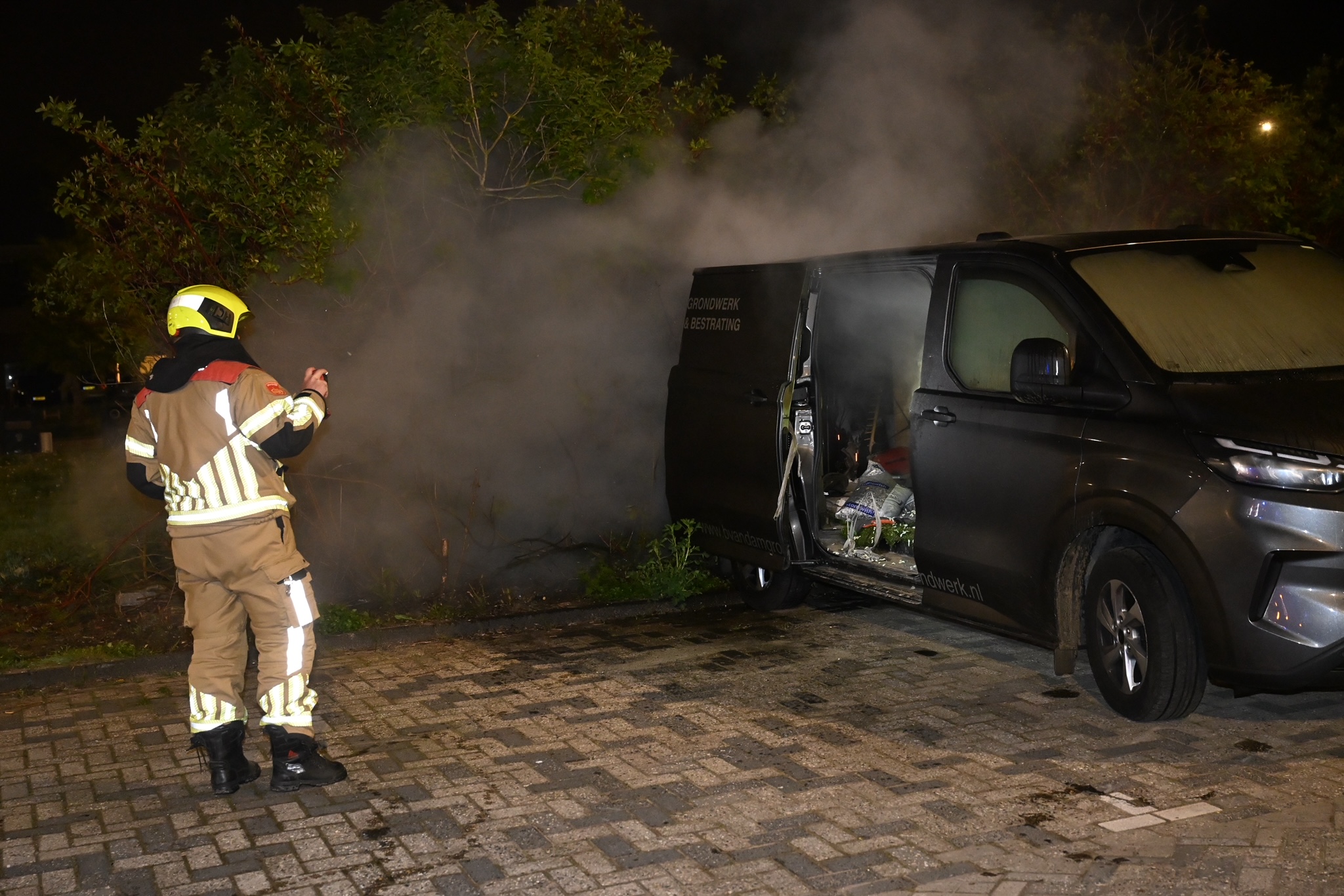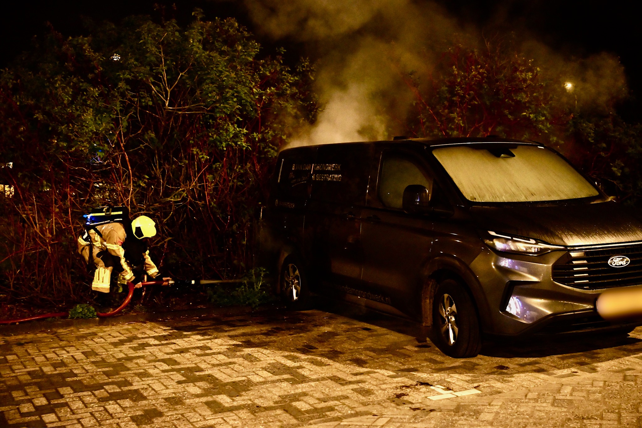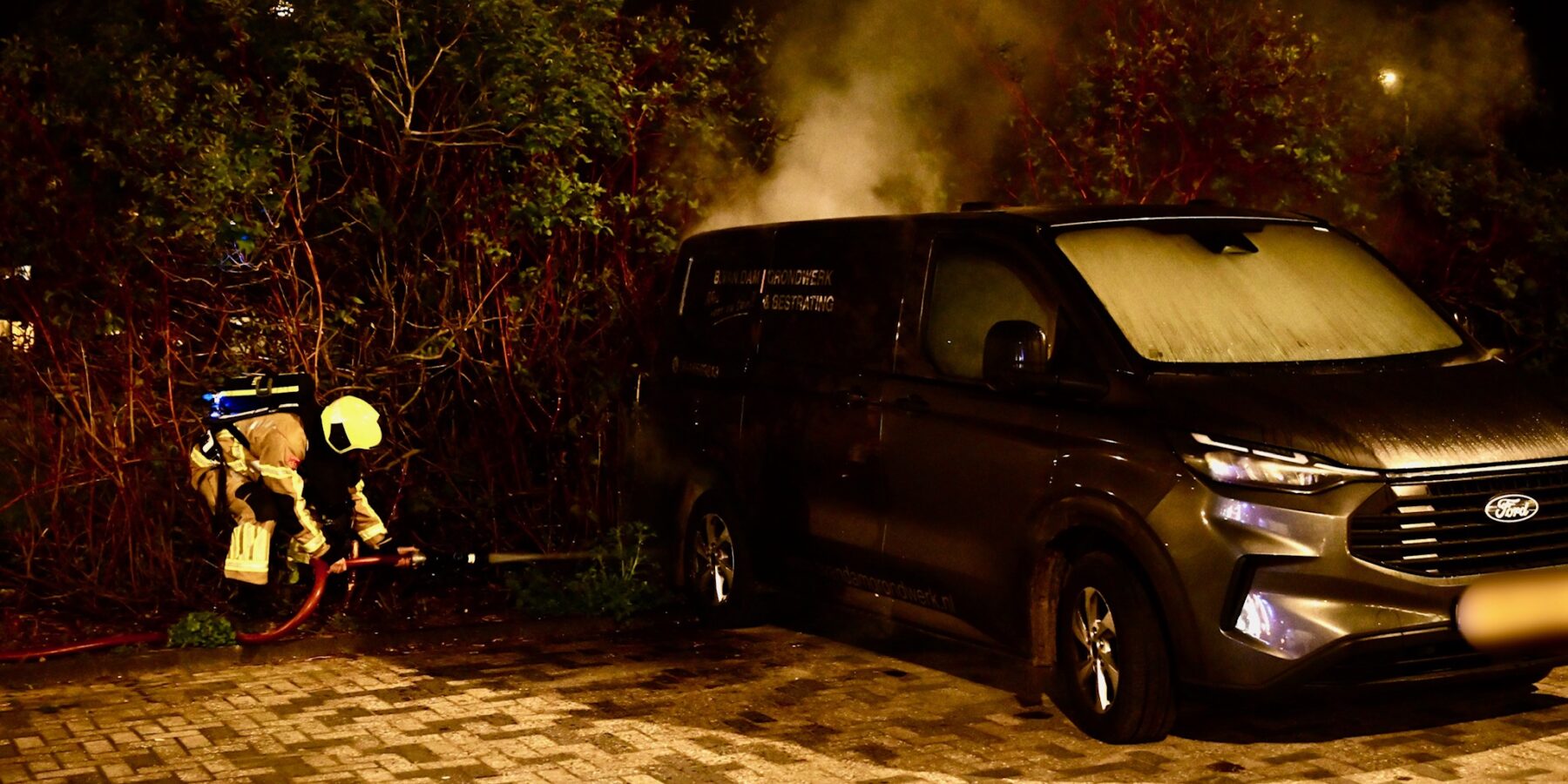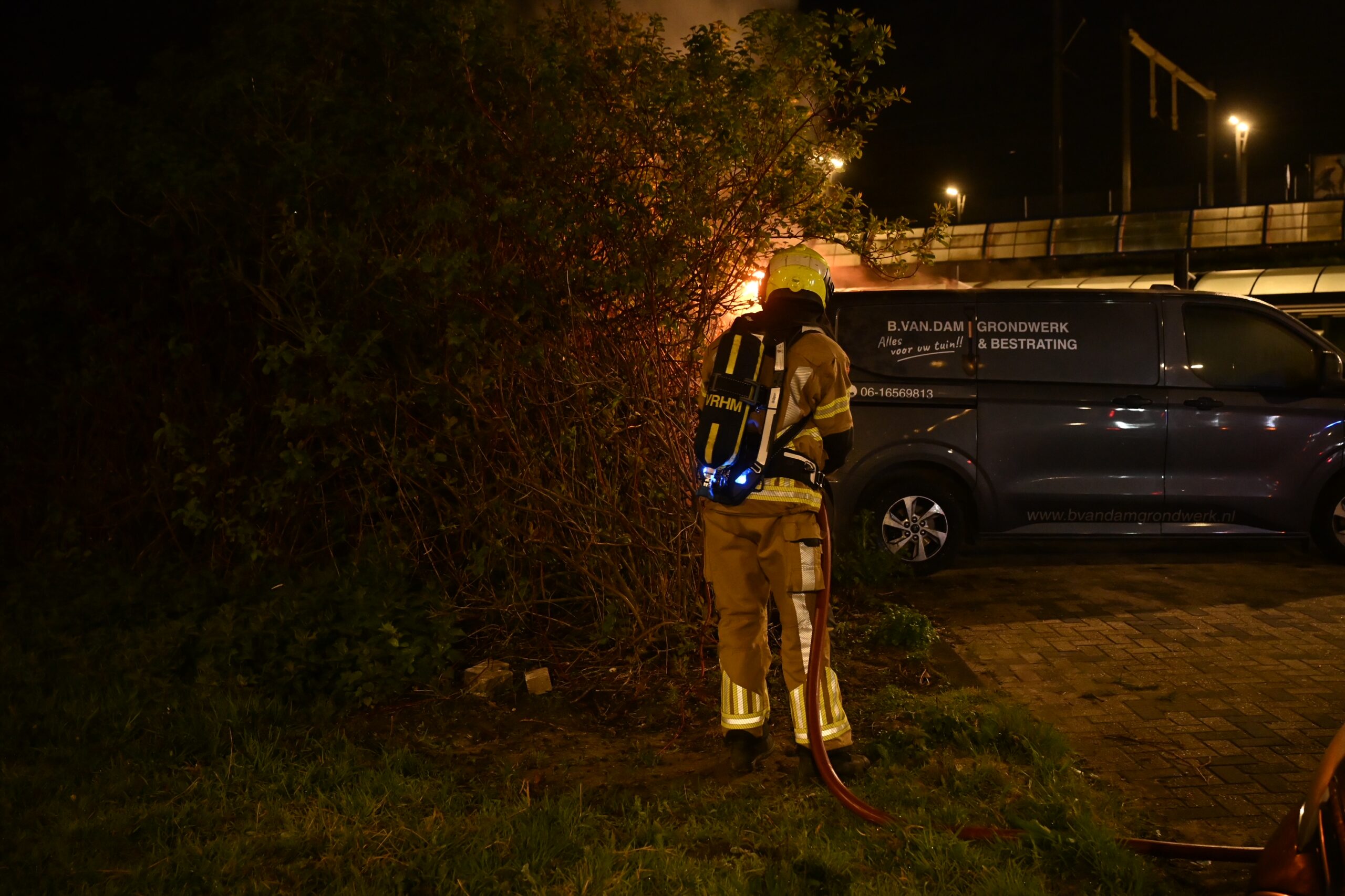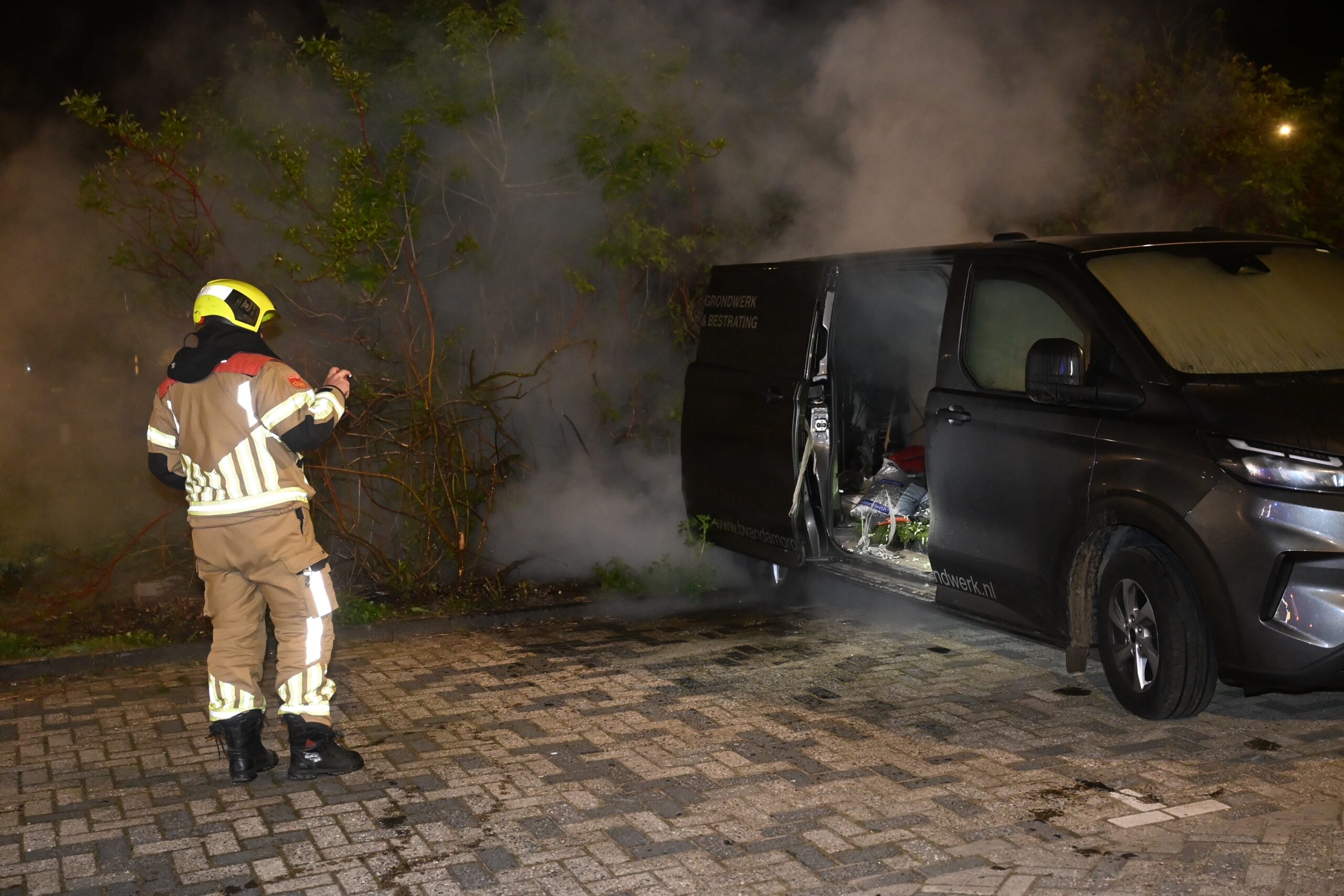 Een bestelbus op het parkeerterrein bij station De Vink is in de nacht van zaterdag op zondag in brand gevlogen. De brandweer kreeg de brand snel onder controle, maar kon niet voorkomen dat de bus flinke schade opliep.
