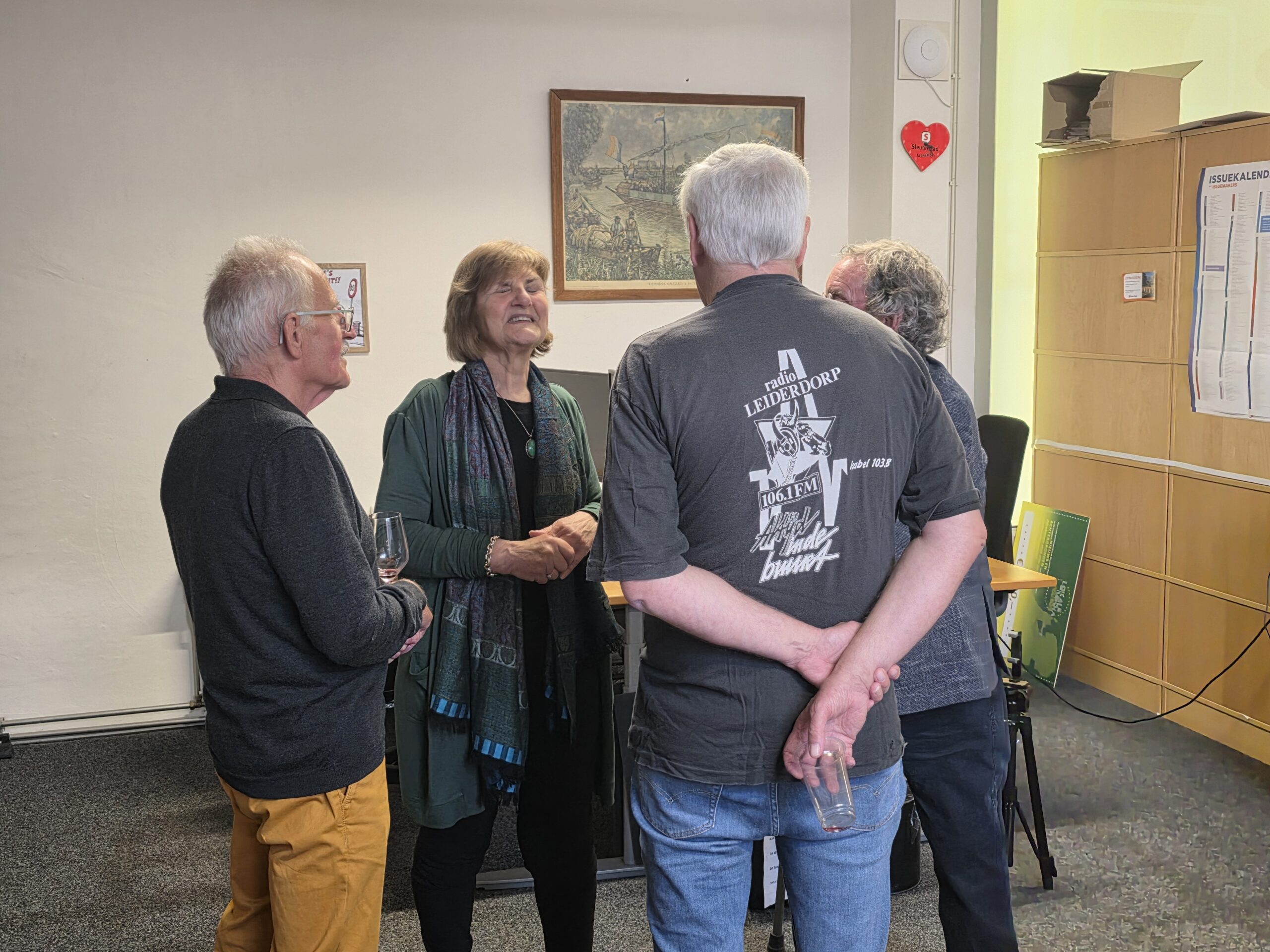 Radio Leiderdorp heeft onder die naam zo’n tien jaar bestaan. Veel van de aanwezigen hadden elkaar na die tijd niet meer gezien en dus was het een vrolijk weerzien, waarbij uitgebreid herinneringen werden opgehaald. Een indrukwekkend deel van de oud-medewerkers is voor of achter de schermen nog steeds actief met radio bezig.