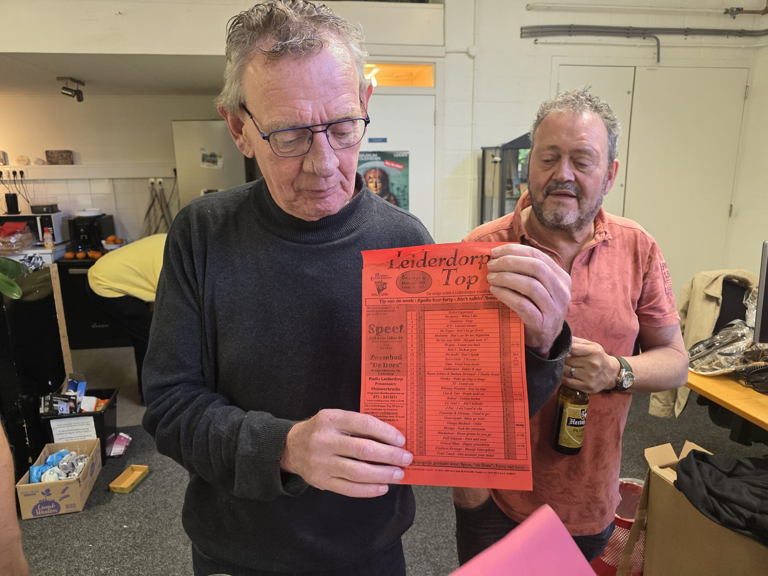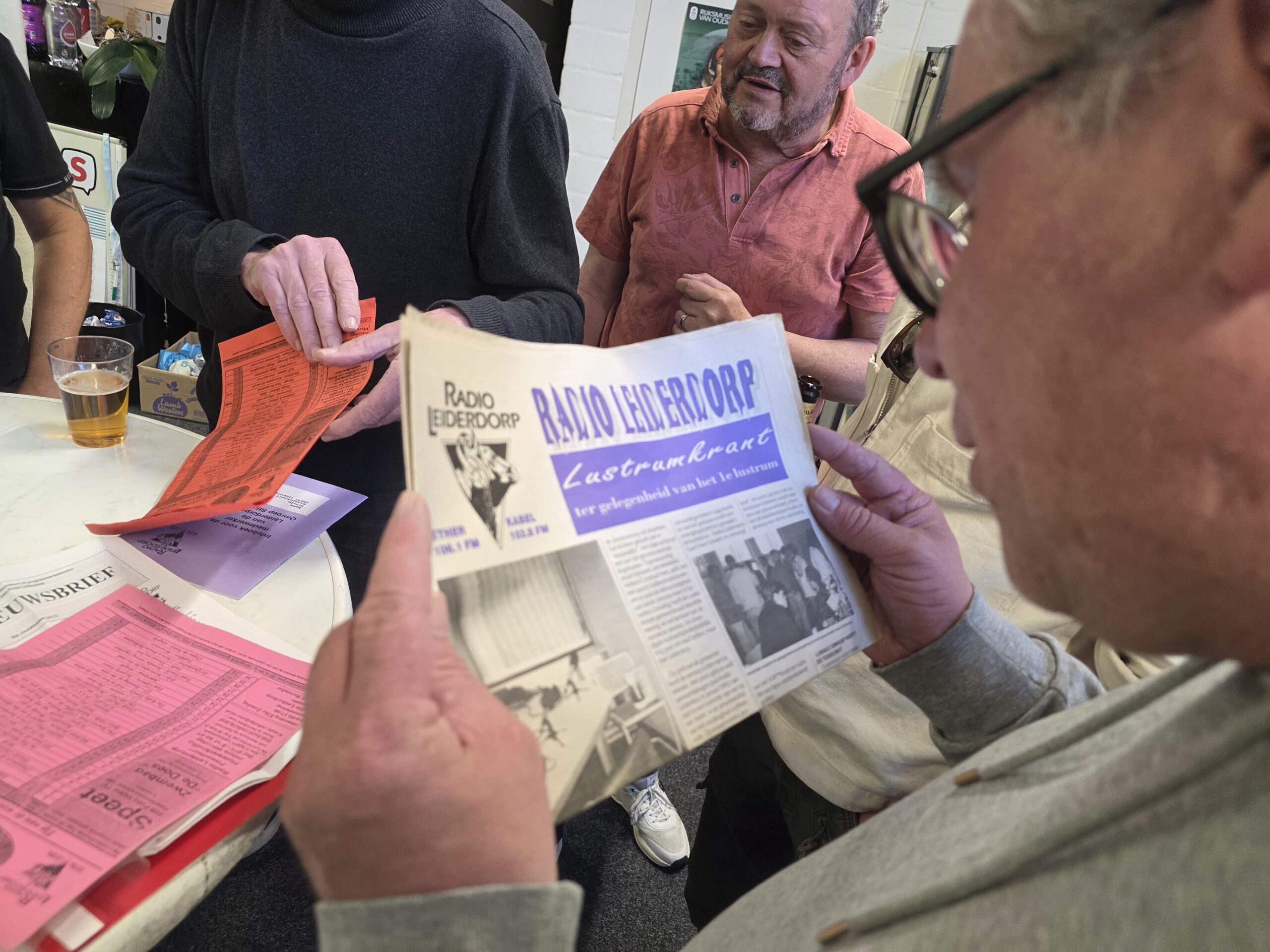 Zo’n twintig oud-medewerkers van het vroegere Radio Leiderdorp waren aanwezig en haalden uitgebreid herinneringen op aan de omroep die begin 1992 begon met uitzenden nadat de Leiderdorpse radiomakers zich hadden afgesplitst van de toenmalige Streekomroep Rijnland.