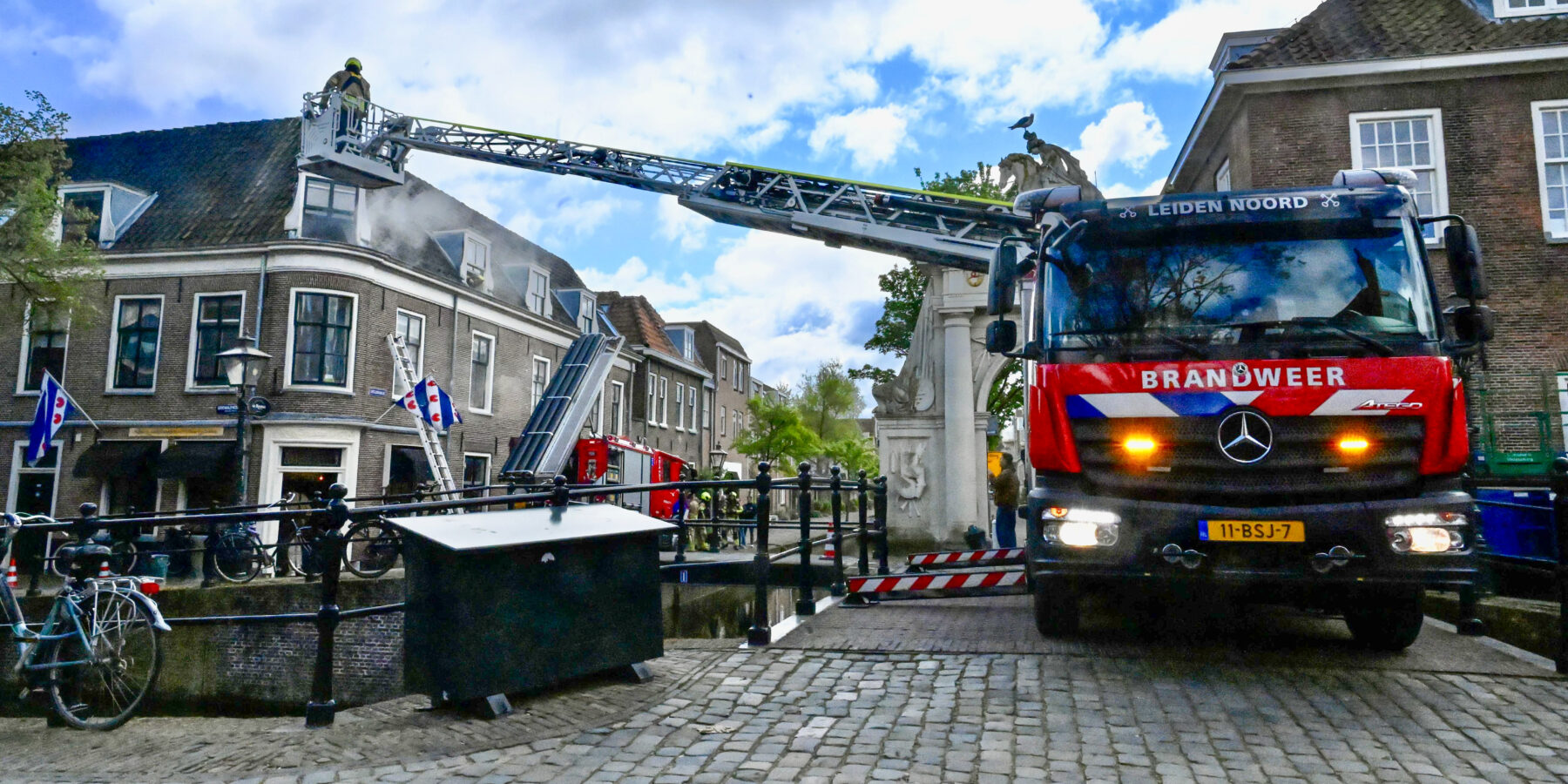 De brandweerposten van Leiden-Noord én Zuid hebben maandagmiddag geoefend in de binnenstad van Leiden. De oefening vond plaats in een studentenhuis aan de Doelengracht in Leiden.