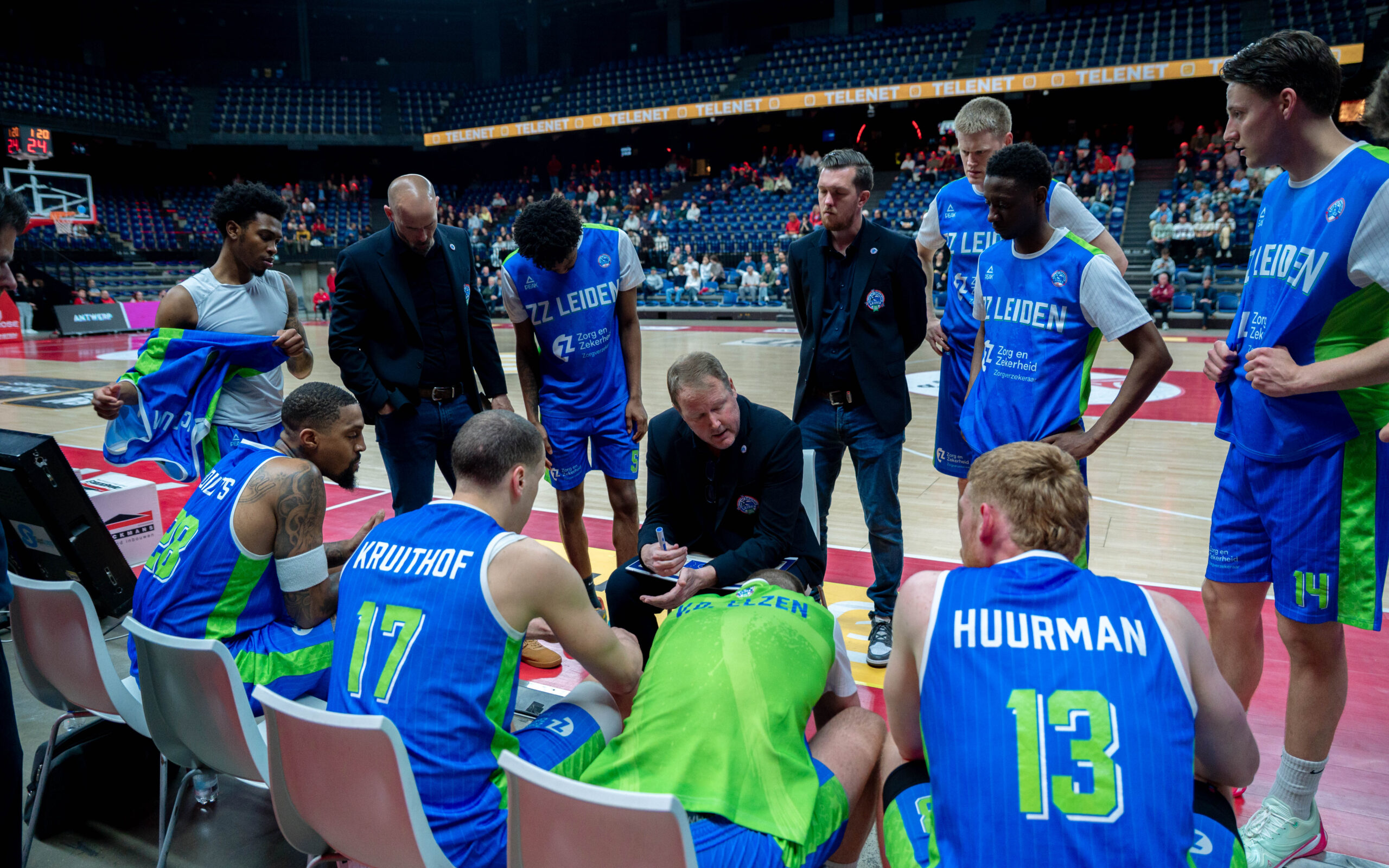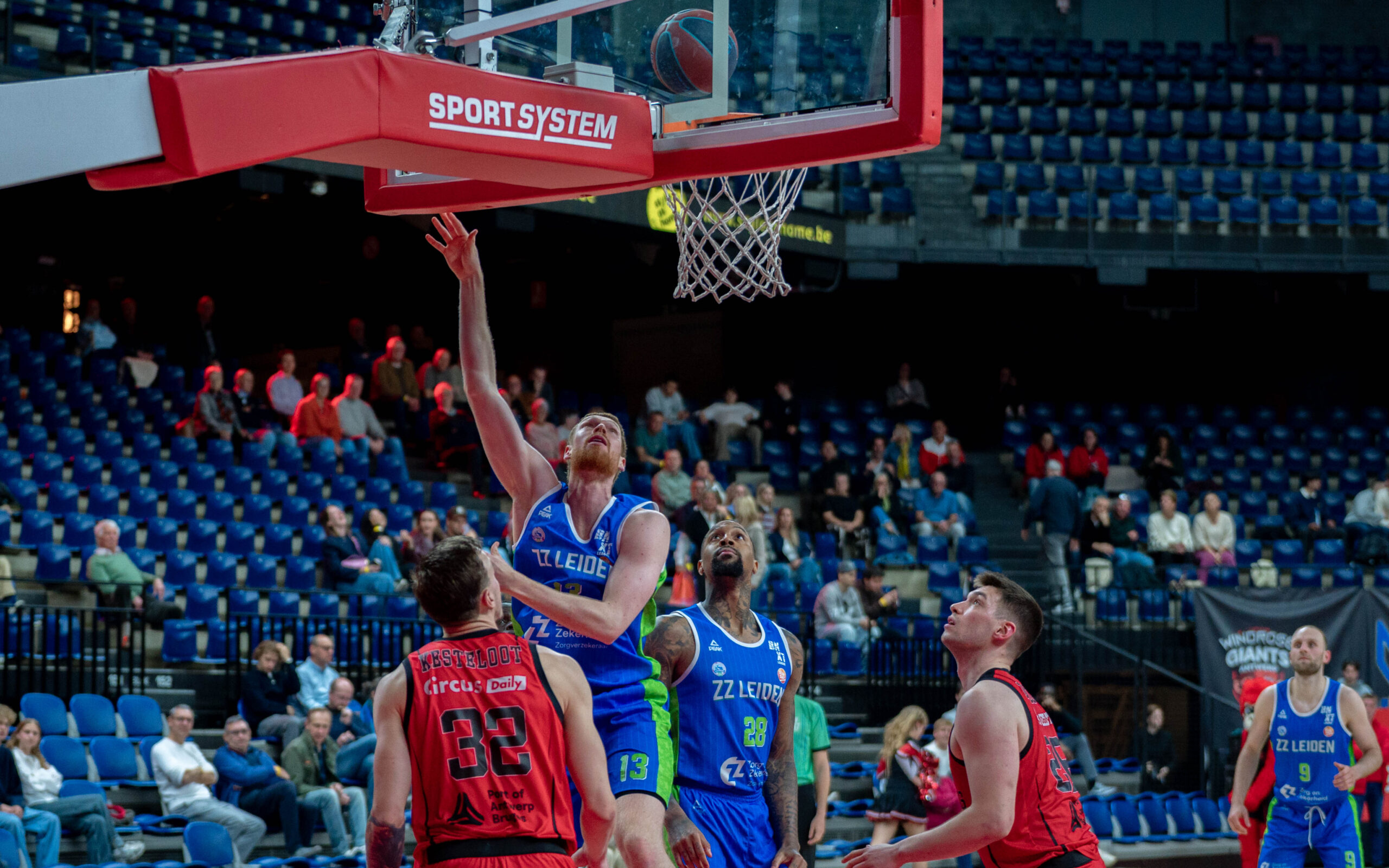 Zorg en Zekerheid Leiden Basketball heeft maandagavond de uitwedstrijd tegen Windrose Giants Antwerp met 97-78 verloren. Bij rust keek de Leidse formatie al tegen een achterstand van 18 punten aan: 52-34. Na rust kwam ZZ Leiden nog terug tot 12 punten (73-61), maar in het laatste kwart was het gedaan en moest de Leidse ploeg de vierde opeenvolgende nederlaag incasseren.