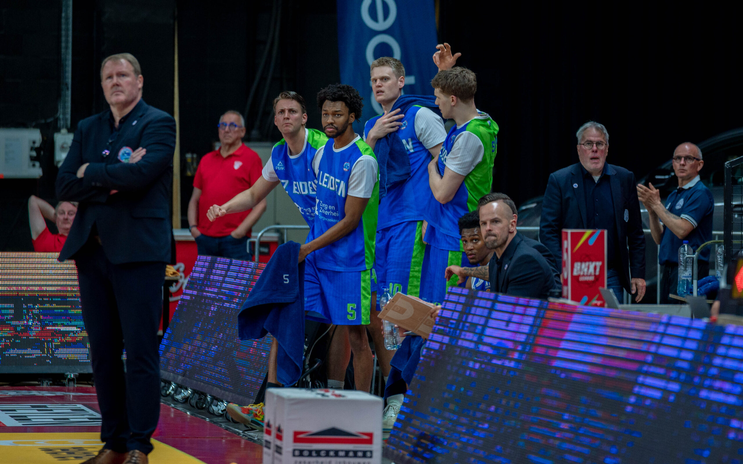 Na scores van Roeland Schaftenaar, Maconda, Jibbe Sicking en een nieuwe driepunter van Van den Elzen naderde ZZ Leiden in het tweede kwart tot op zes punten: 32-26. Een minuut later had de Leidse verdediging driepunters van Yoeri Schoepen en Enoch Ckeeks moeten incasseren, waardoor Doug Spradley halverwege het tweede kwart bij een 40-28 achterstand naar een time-out greep.