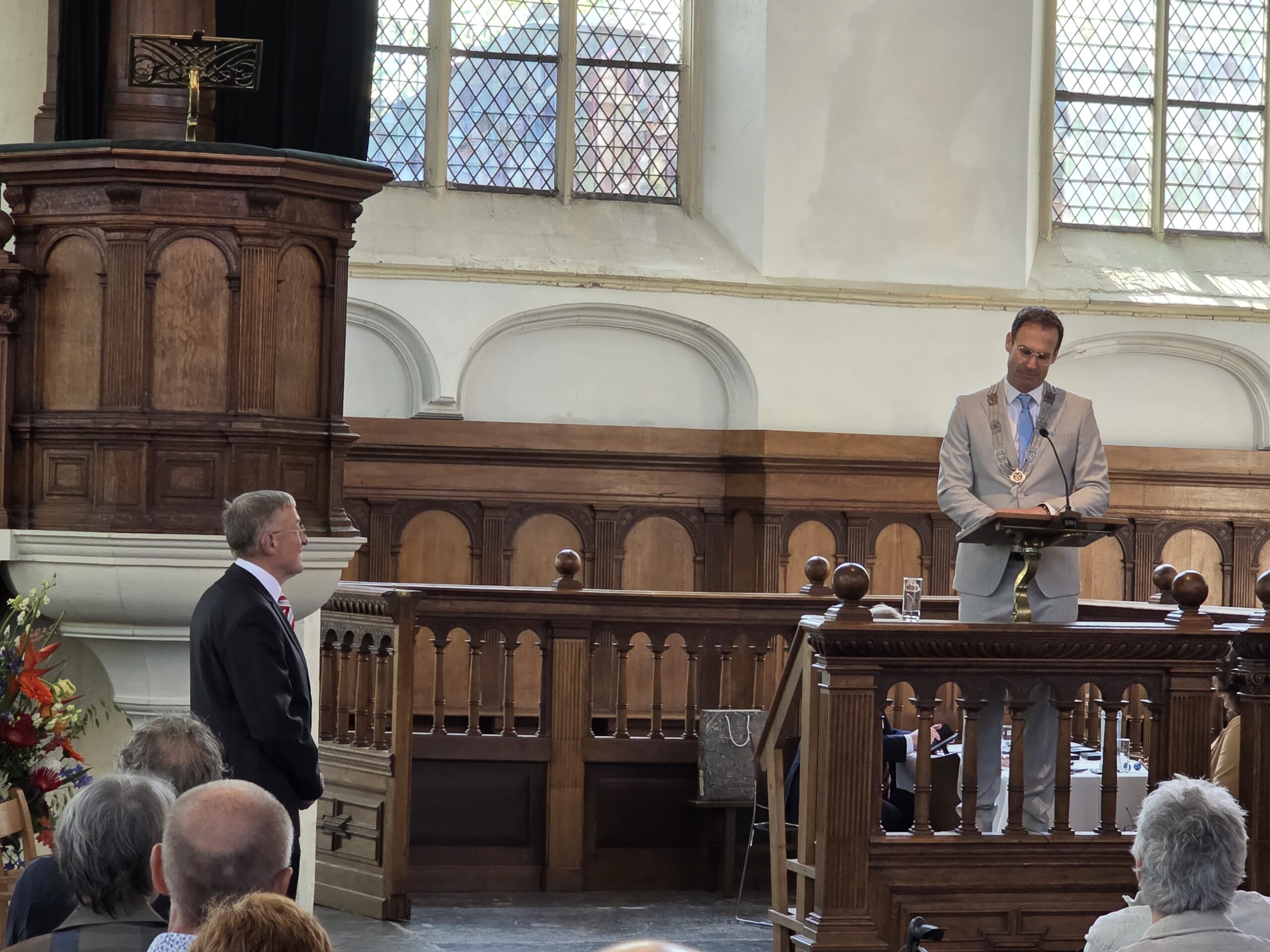 Bij de jaarlijkse Lintjesregen in de Hooglandse Kerk in Leiden mocht burgemeester Peter Heijkoop in naam van de Koning veertien onderscheidingen uitdelen aan personen die zich op bijzondere wijze verdienstelijk hebben gemaakt voor de samenleving.