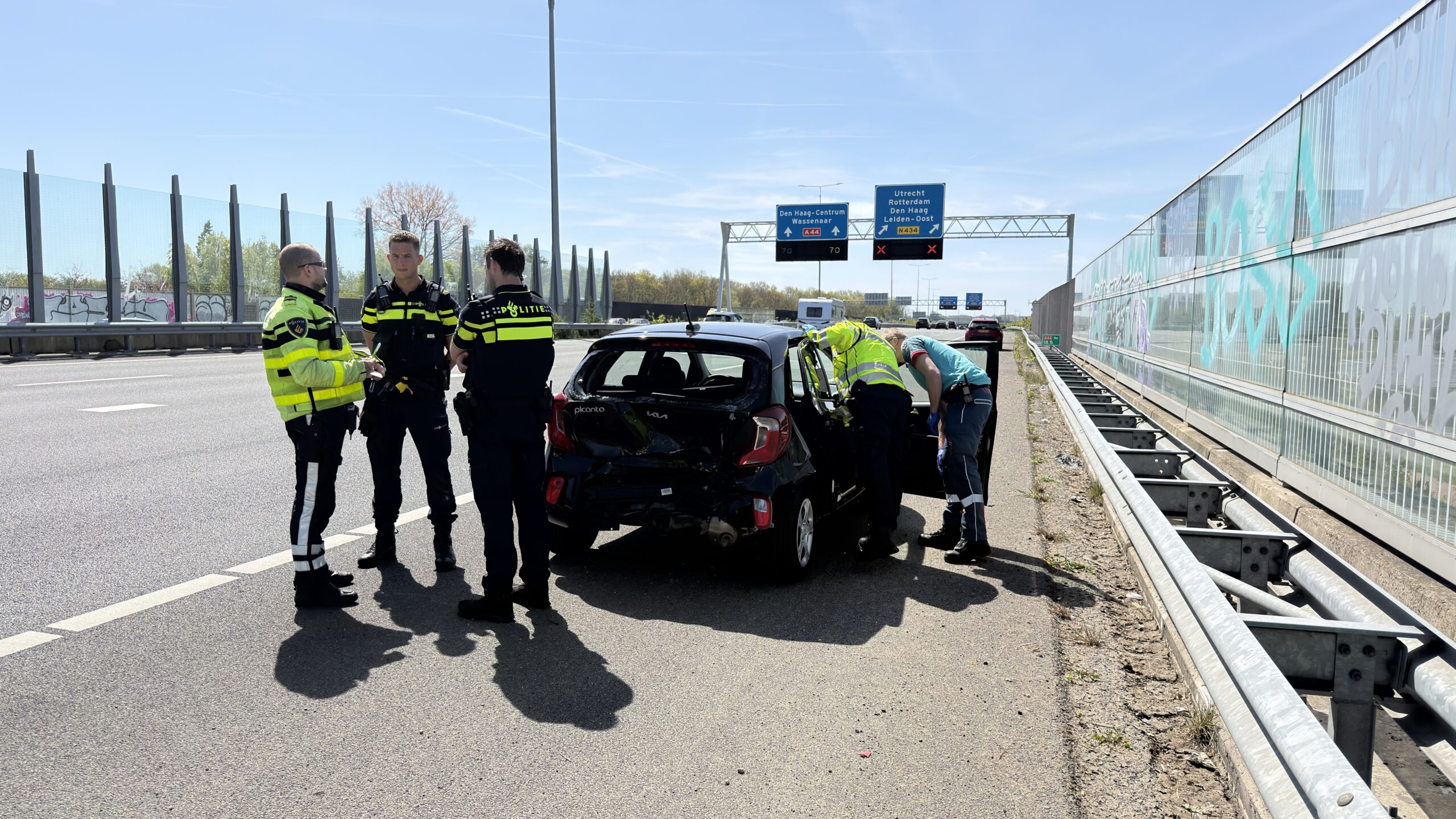 Bij een kop-staart aanrijding tussen twee personenauto’s op Rijksweg A44 bij Leiden zijn drie mensen gewond geraakt. Het ongeval vond zondagmiddag plaats rond 12.30 uur.