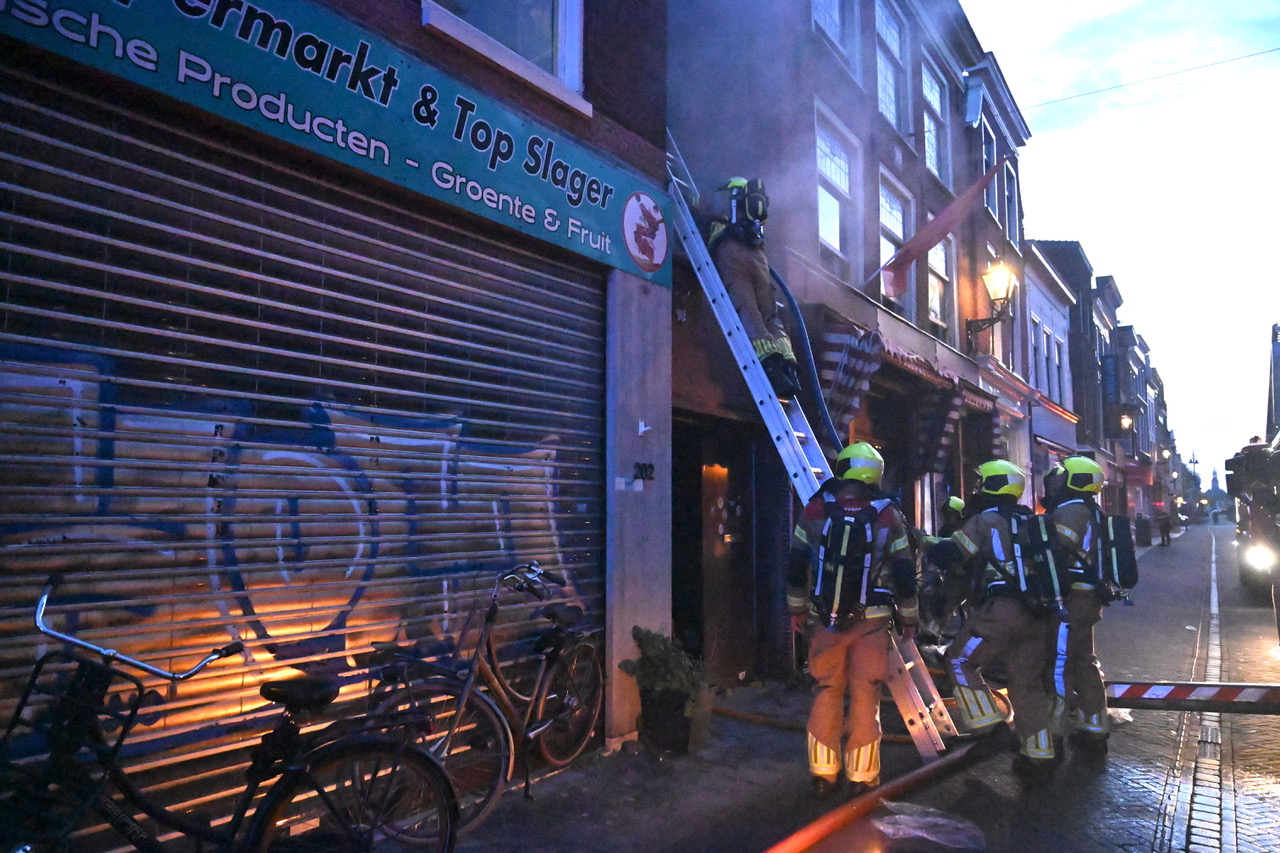 Bewoners van een naastgelegen studentenhuis moesten op straat wachten tot de brand was geblust. Hoe die is ontstaan, is nog niet duidelijk.