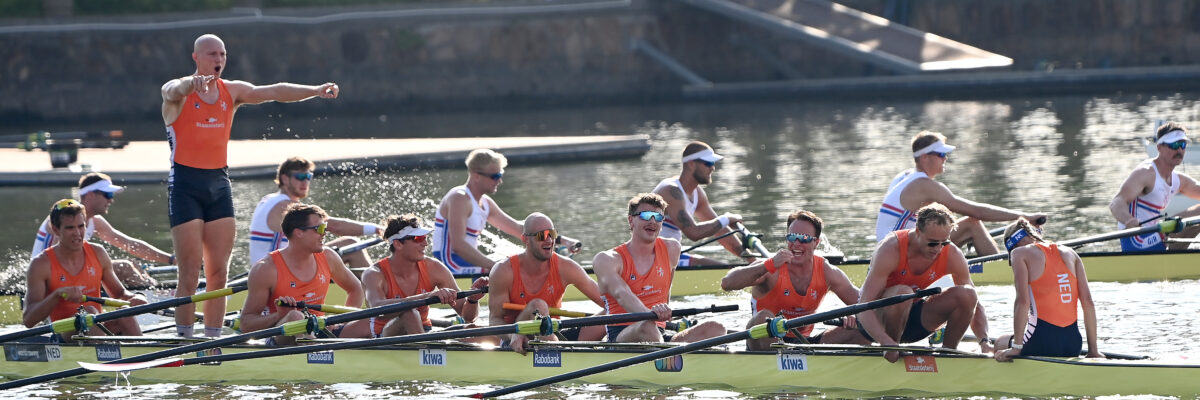 Historisch WK goud voor Die Leythe-roeier Finn Florijn. In Shanghai werd Nederland voor het eerst wereldkampioen met de mannen acht.